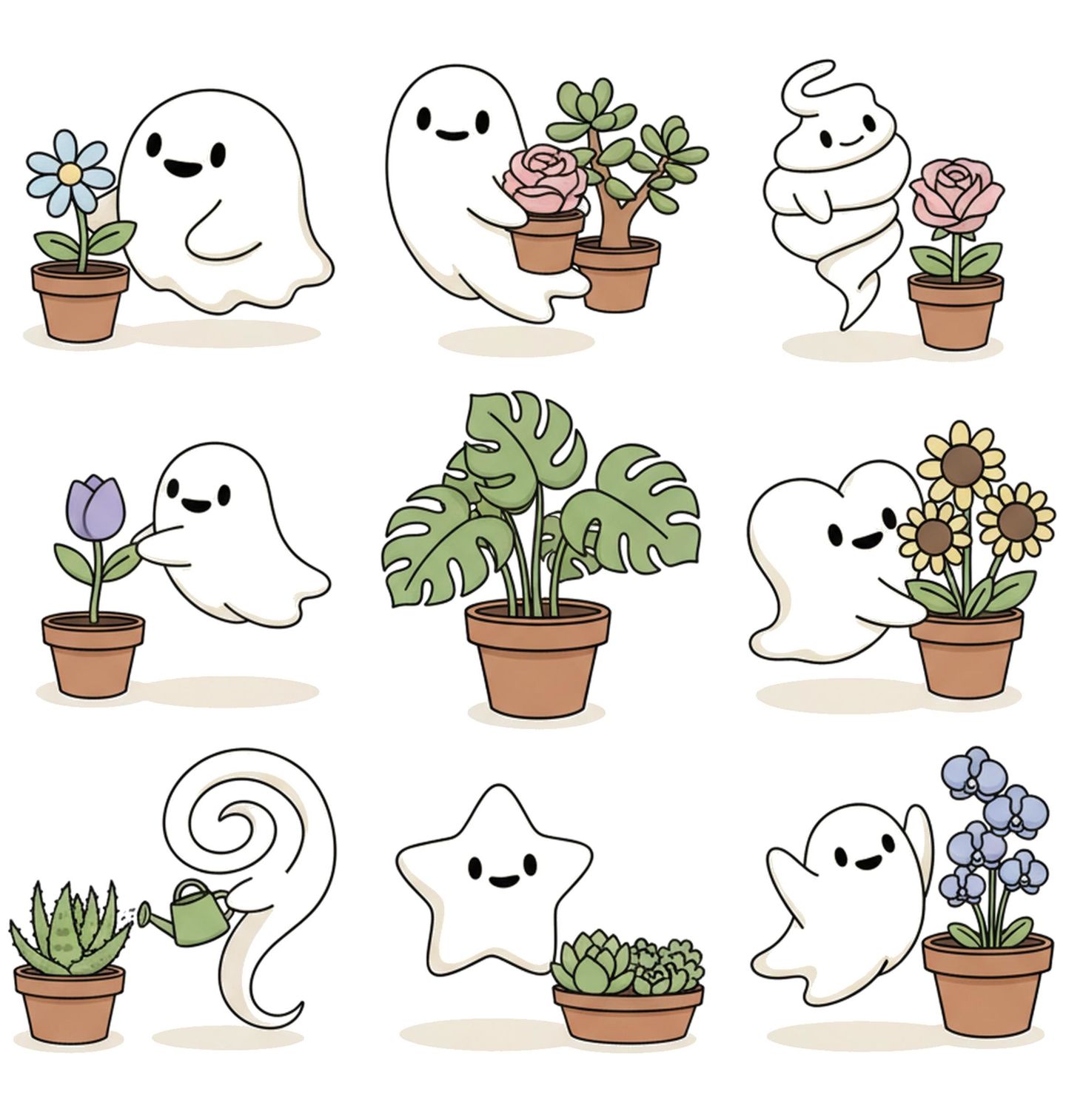 Pánské tričko Roztomilí Duchové s Květinami. Originální design kombinuje motivy duchů a rostlin v roztomilém stylu. Malí duchové pečují o květiny a pokojové rostliny, což vytváří hravou a pozitivní atmosféru. Ideální pro milovníky cute ilustrací, rostlin a originálního humoru.