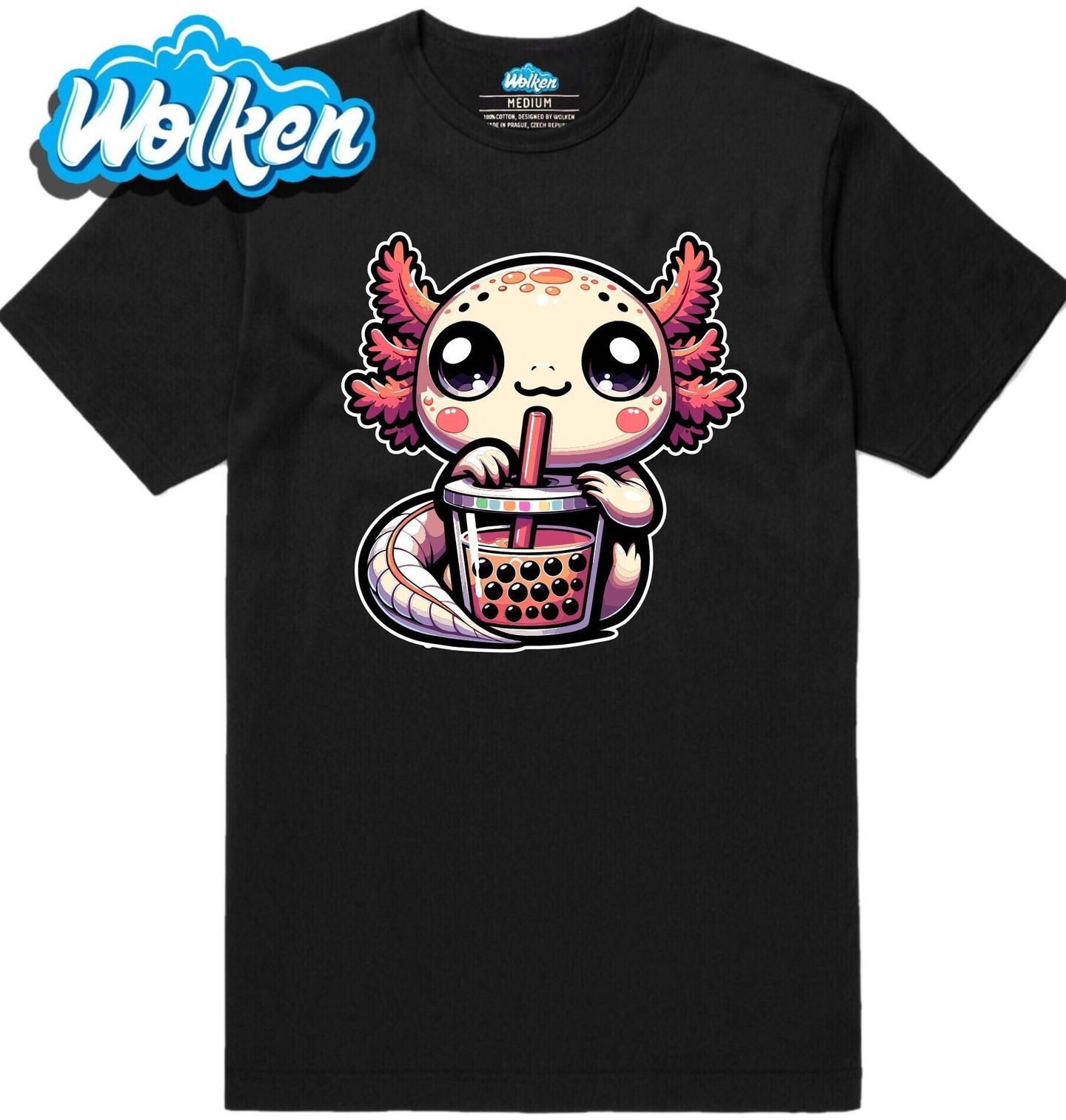 Pánské tričko Roztomilý Axolotl s Bubble Tea. Tento rozkošný motiv spojuje podvodní kouzlo s lahodnou chutí – roztomilý axolotl si právě pochutnává na velké dávce oblíbeného nápoje bubble tea. Výrazné barvy, velké oči a milý výraz dělají z motivu ideální volbu pro fanoušky kawaii stylu, zvířátek a sladkých radostí.