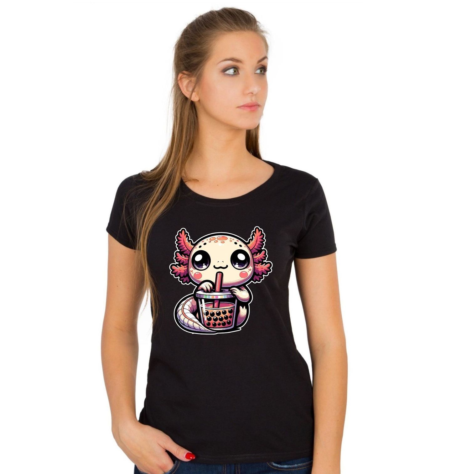 Dámské tričko Roztomilý Axolotl s Bubble Tea