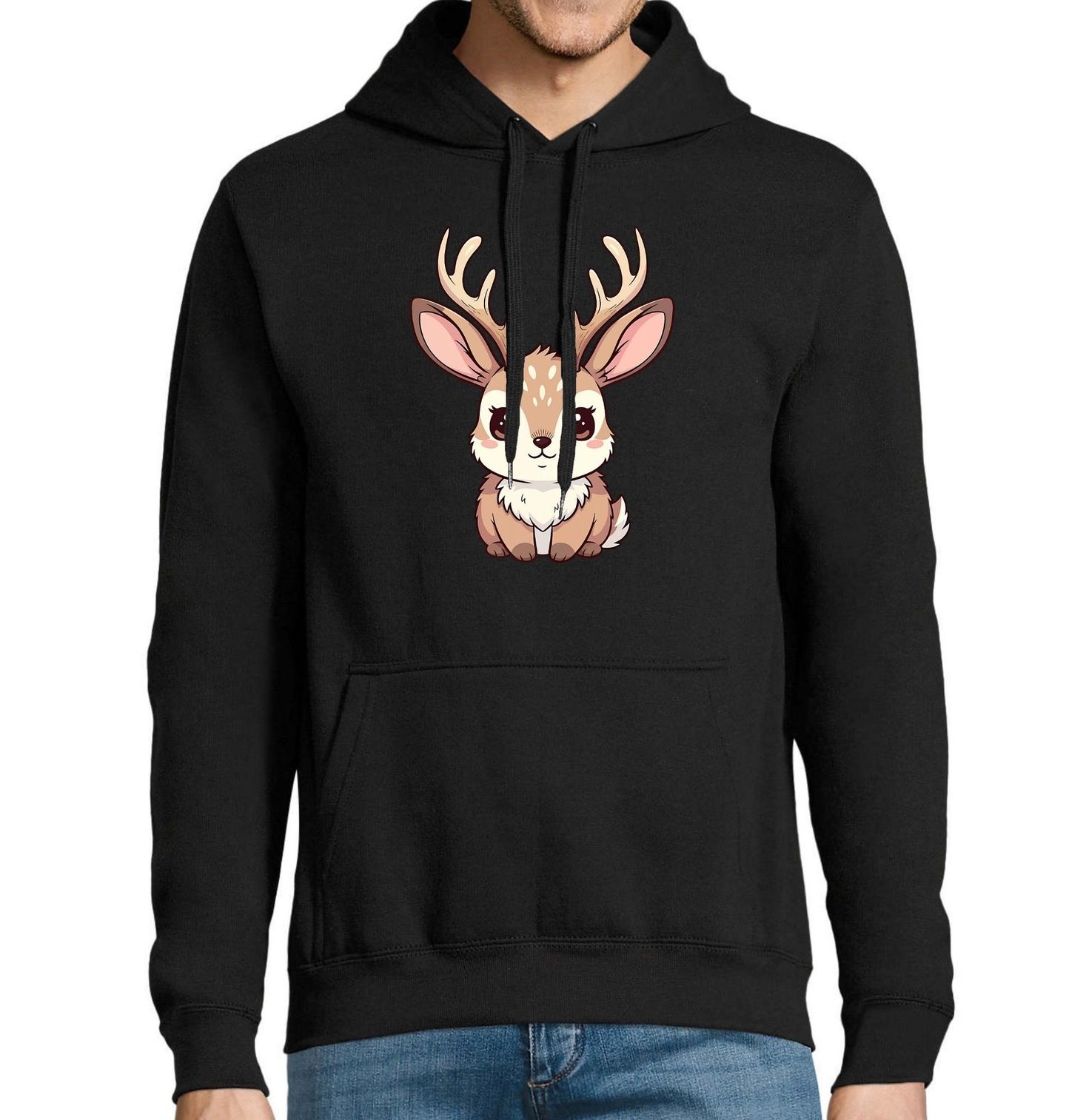 Pánská mikina Roztomilý koloušek. Roztomilé mládě jelena přináší kouzelný motiv, který okouzlí milovníky zvířat a přírody. Výrazné paroží dodává motivu pohádkový nádech, zatímco celkový design působí něžně a přátelsky. Tento potisk je ideální pro každodenní nošení a skvěle se hodí pro děti i dospělé, kteří mají rádi lesní faunu.