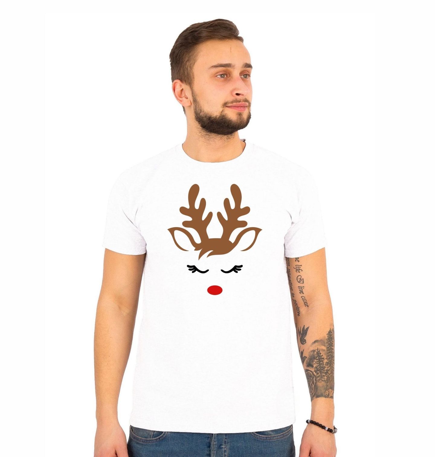 Pánské tričko Roztomilý Sob Rudolf. Vánoce jsou tady a s nimi přichází i kouzelný motiv soba Rudolfa s typickým červeným nosem. Tento minimalistický design kombinuje eleganci a roztomilost v jednom – zavřené oči s dlouhými řasami a výrazné paroží dodávají motivu jemný sváteční nádech.