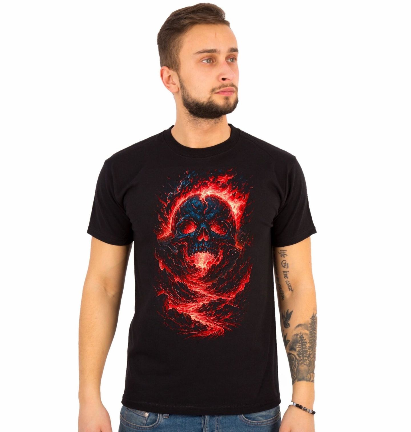 Pánské tričko Rozžhavená Lebka v Lávě. Extrémně výrazný a dynamický motiv, který zobrazuje kostlivec zrozený z ničivé síly přírody. Rozžhavená láva proudí jeho tělem a vytváří fascinující vizuální efekt plný energie, chaosu a síly. Ohnivé barvy a dramatická kompozice dodávají designu intenzivní atmosféru, která okamžitě upoutá pozornost. Tento design je ideální pro milovníky dark artu, fantasy stylu a výrazných motivů, které vyzařují energii a sílu.