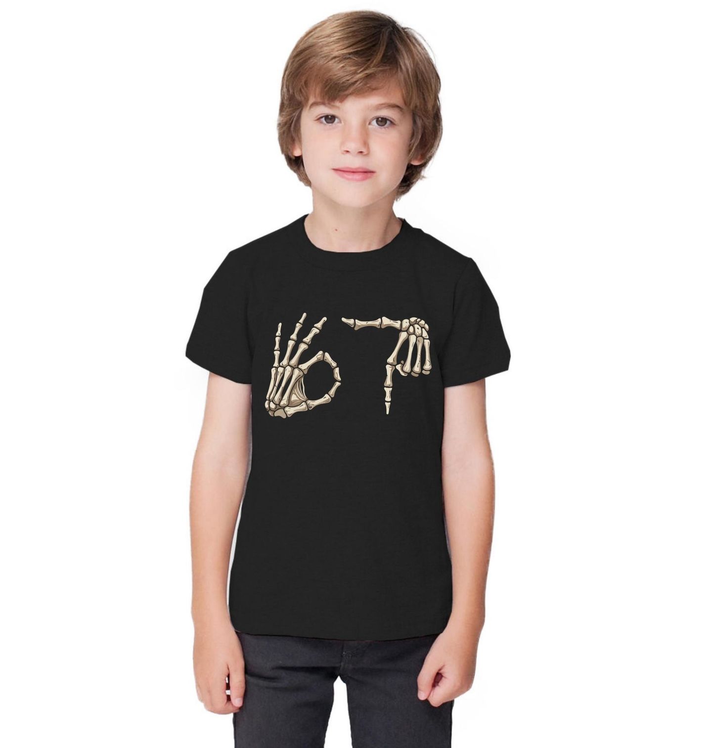 Dětské tričko Ruce Kostlivce 67 Six Seven Meme. Originální a lehce strašidelný motiv 67 tvořený kostlivcovými rukami je ideální pro všechny milovníky temnějšího humoru. Design six seven působí jako vtipné meme, kde kostlivec rukama vytváří čísla 6 a 7. Stylový, zábavný a trochu creepy potisk, který se hodí pro fanoušky hororu, gotiky nebo Halloween atmosféry.