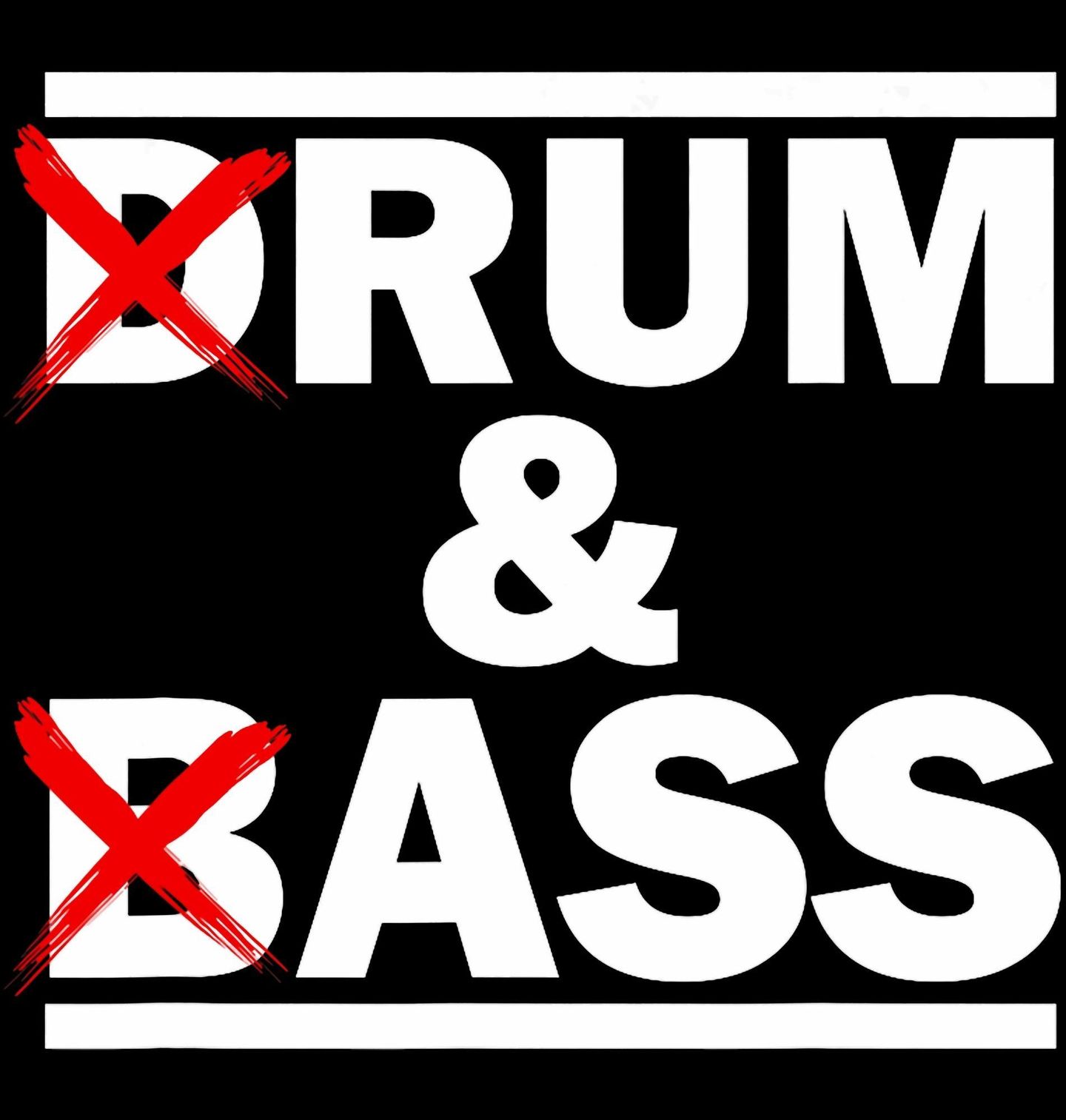 Dámské tričko Rum & Ass. Tento odlehčený a hravý motiv si dělá legraci z hudebního stylu Drum & Bass (Buben a basa). Díky přeškrtnutým písmenům se z nápisu stává výraz rum a zadek, což vytváří zábavnou a trochu provokativní slovní hříčku. Jednoduchý kontrastní design s červenými prvky na černém pozadí je výrazný a nepřehlédnutelný.