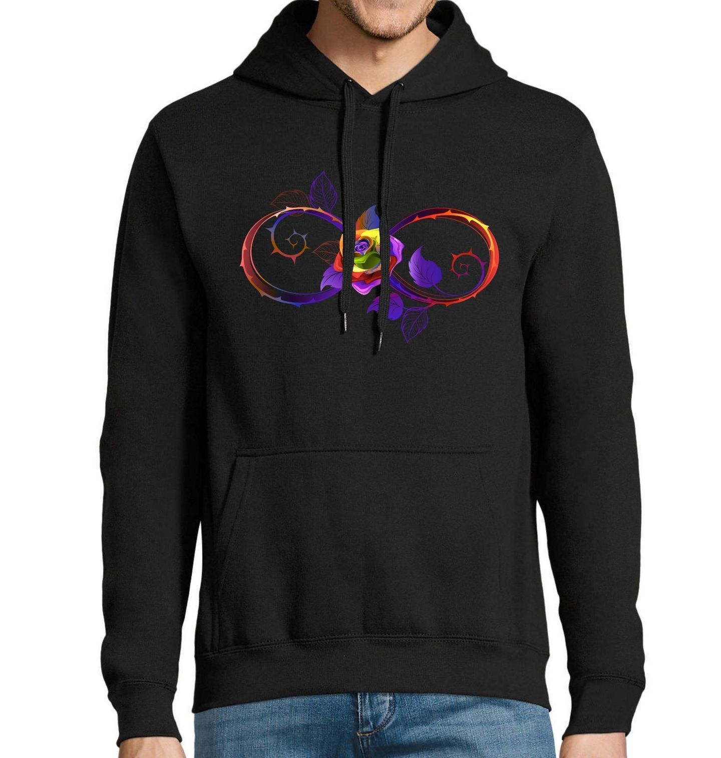Pánská mikina Růže a Trny Nekonečna. Růže je symbolem lásky, odvahy a jedinečnosti, zatímco nekonečno připomíná, že některé věci — jako víra, krása a emoce — mohou trvat navždy. Vyjádři svou hloubku a styl jedním výjimečným tričkem.