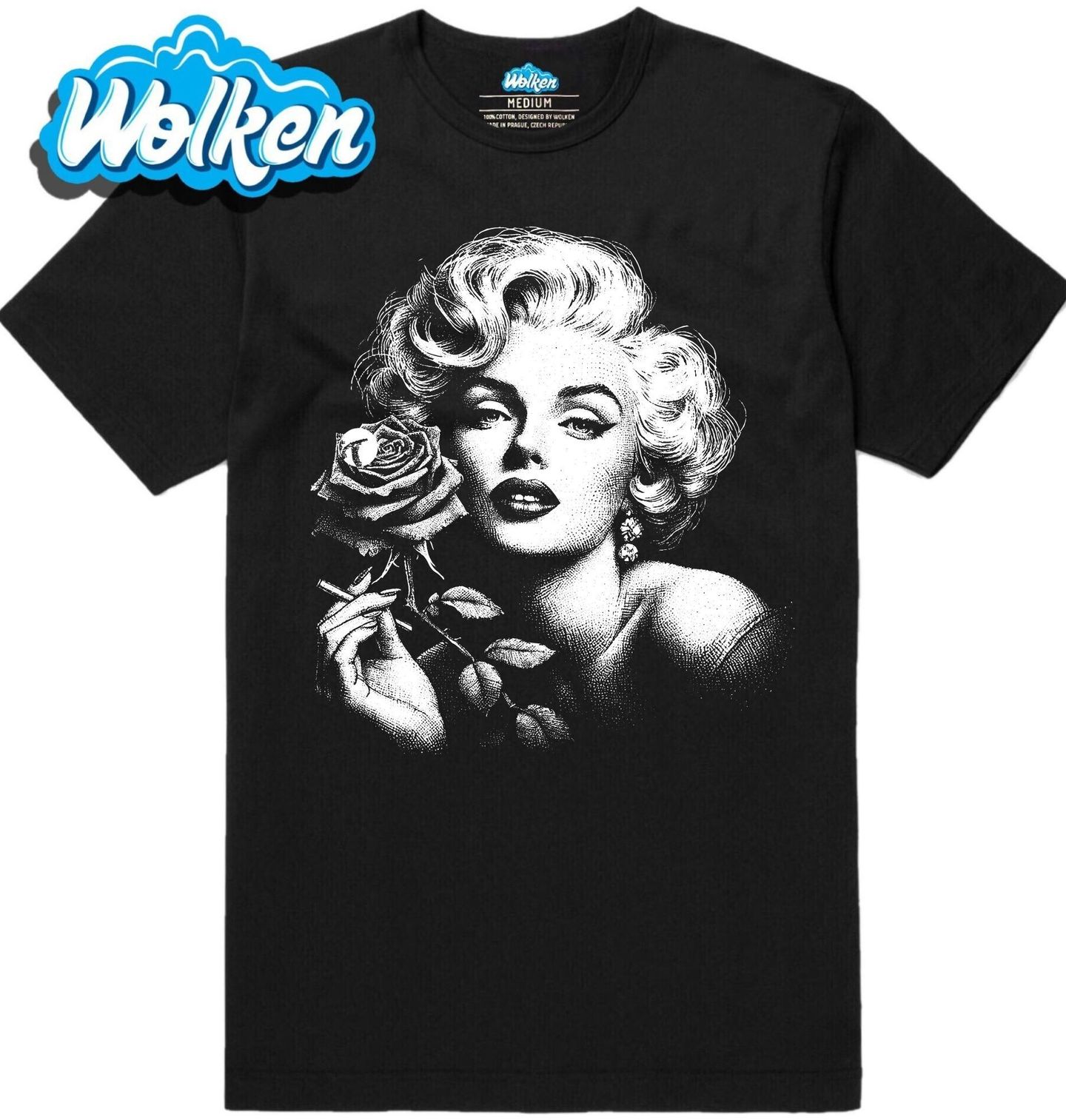 Pánské tričko Růže pro Marilyn Monroe. Motiv spojuje nadčasový půvab Marilyn Monroe s krásou růže – symbolem vášně, síly a smyslnosti. Černobílý motiv zachycuje legendární herečku v okouzlujícím kontrastu světla a stínu, jako by právě vystoupila z filmového plátna.