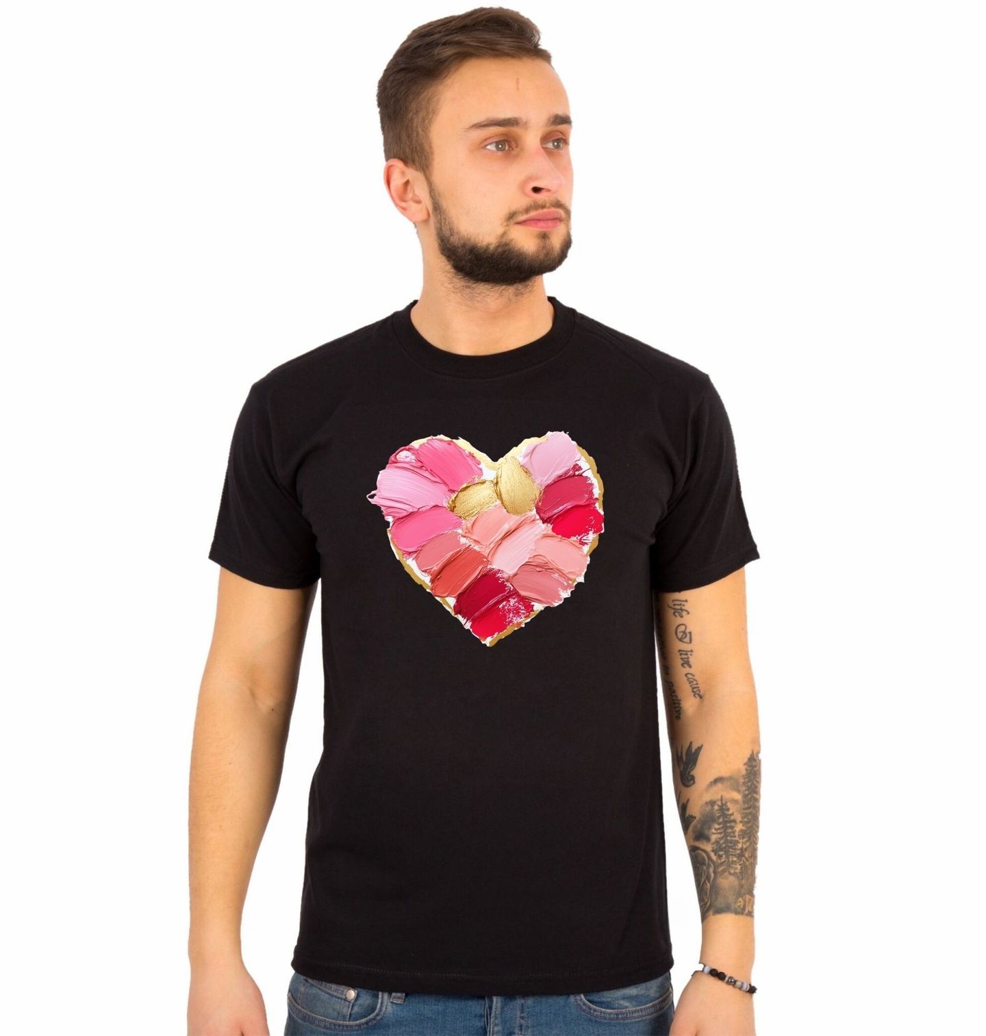 Pánské tričko Růžová Paleta Barev. Originální umělecký design ve tvaru srdce, vytvořený z tahů štětce v odstínech růžové, červené a zlaté, působí jako malba přímo z malířské palety. Tento motiv symbolizuje, že láska je tím nejkrásnějším obrazem, který společně tvoříme. Ideální jako romantický dárek na Valentýn nebo pro všechny, kdo milují kreativitu, barvy a něžné emoce.