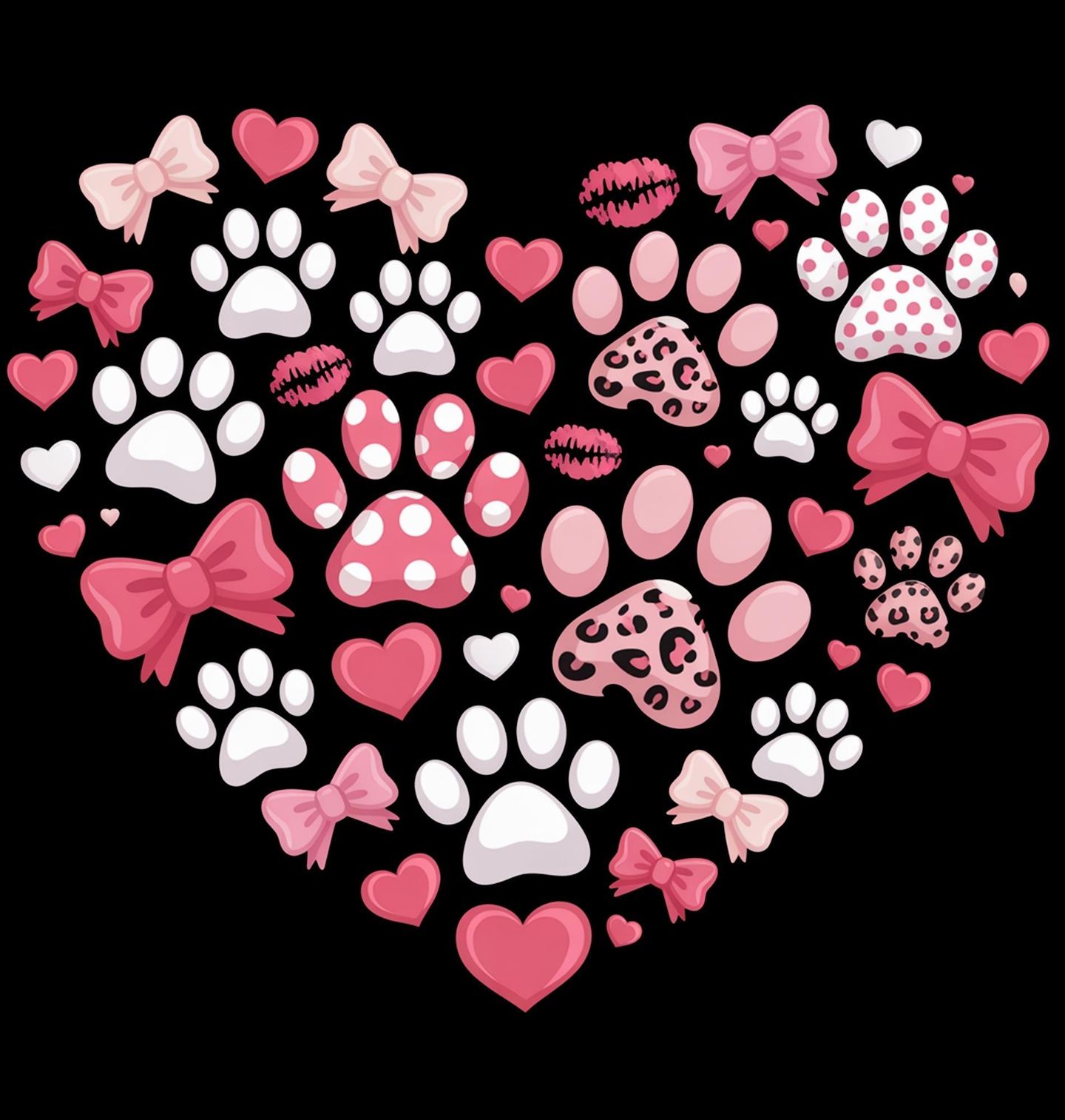 Pánská mikina Růžové Srdce Pejskaře. Roztomilý design ve tvaru srdce složeného z různých tlapky, mašliček a malých srdíček potěší každého, kdo miluje pes a chce svůj styl doplnit něžným motivem. Tento hravý vzor je ideální volba pro každého, kdo je hrdý pejskař a rád ukazuje lásku ke svému čtyřnohému parťákovi. Jemné růžové barvy a stylové tlapky vytvářejí moderní a veselý vzhled vhodný na každodenní nošení i jako originální dárek pro milovníky psů.