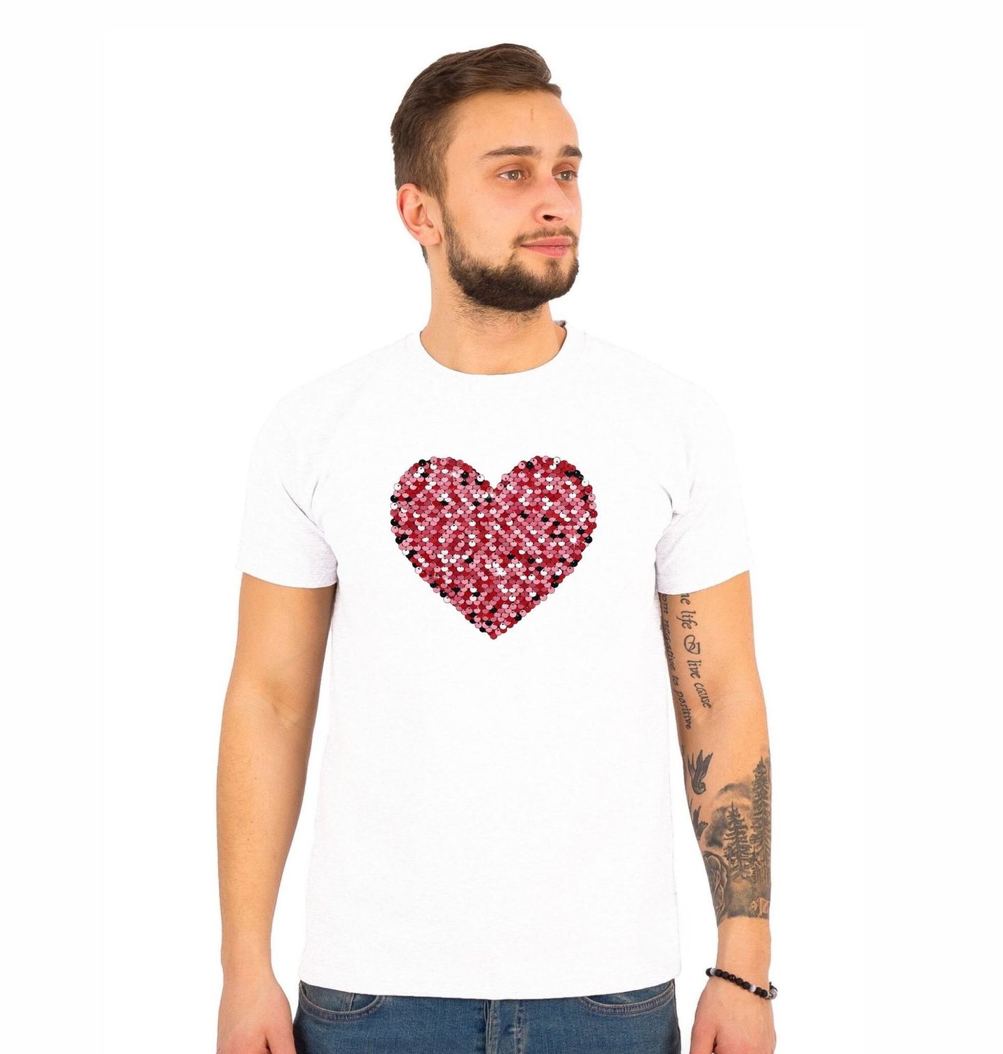 Pánské tričko Růžové Srdce z Flitrů. Tento hravý a výrazný motiv přináší radost, lásku a třpyt v každém detailu. Stylové srdce je vytvořeno z drobných, pečlivě poskládaných prvků, které připomínají lesklé flitry a vytvářejí efekt pohybu, světla a luxusního lesku. Srdce s flitrovým efektem je ideální volbou pro ty, kteří milují výrazné motivy, třpyt a pozitivní energii.
