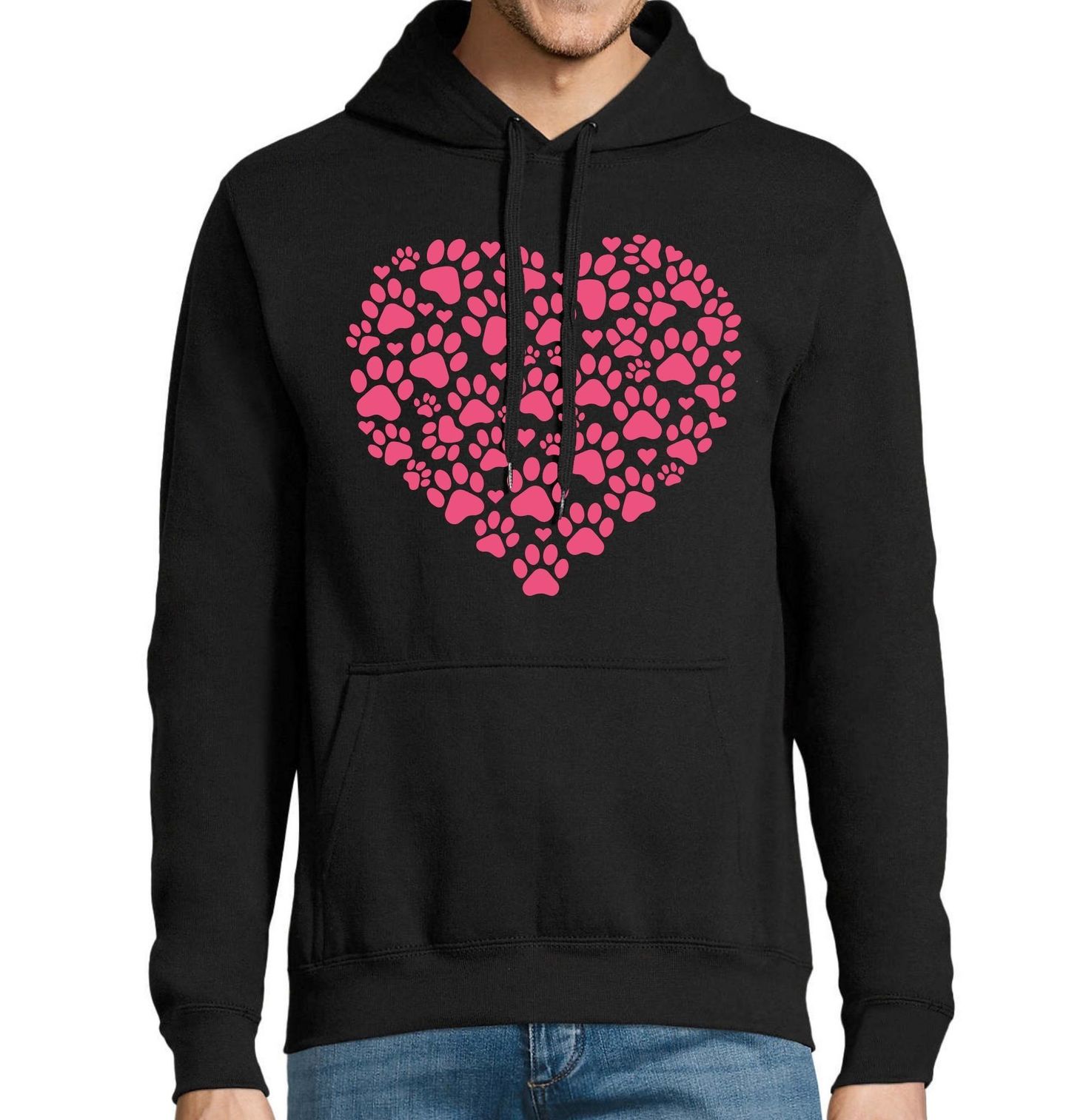 Pánská mikina Růžové Srdce z Tlapek. Originální motiv ve tvaru srdce složeného z malých i velkých tlapky je ideální volba pro každého, kdo miluje pes a chce ukázat svou lásku stylově. Minimalistický design v růžové barvě působí jemně, hravě a hodí se jako krásný doplněk pro každodenní nošení. Každý pejskař ocení symboliku srdce, které vyjadřuje silné pouto mezi člověkem a jeho čtyřnohým parťákem.