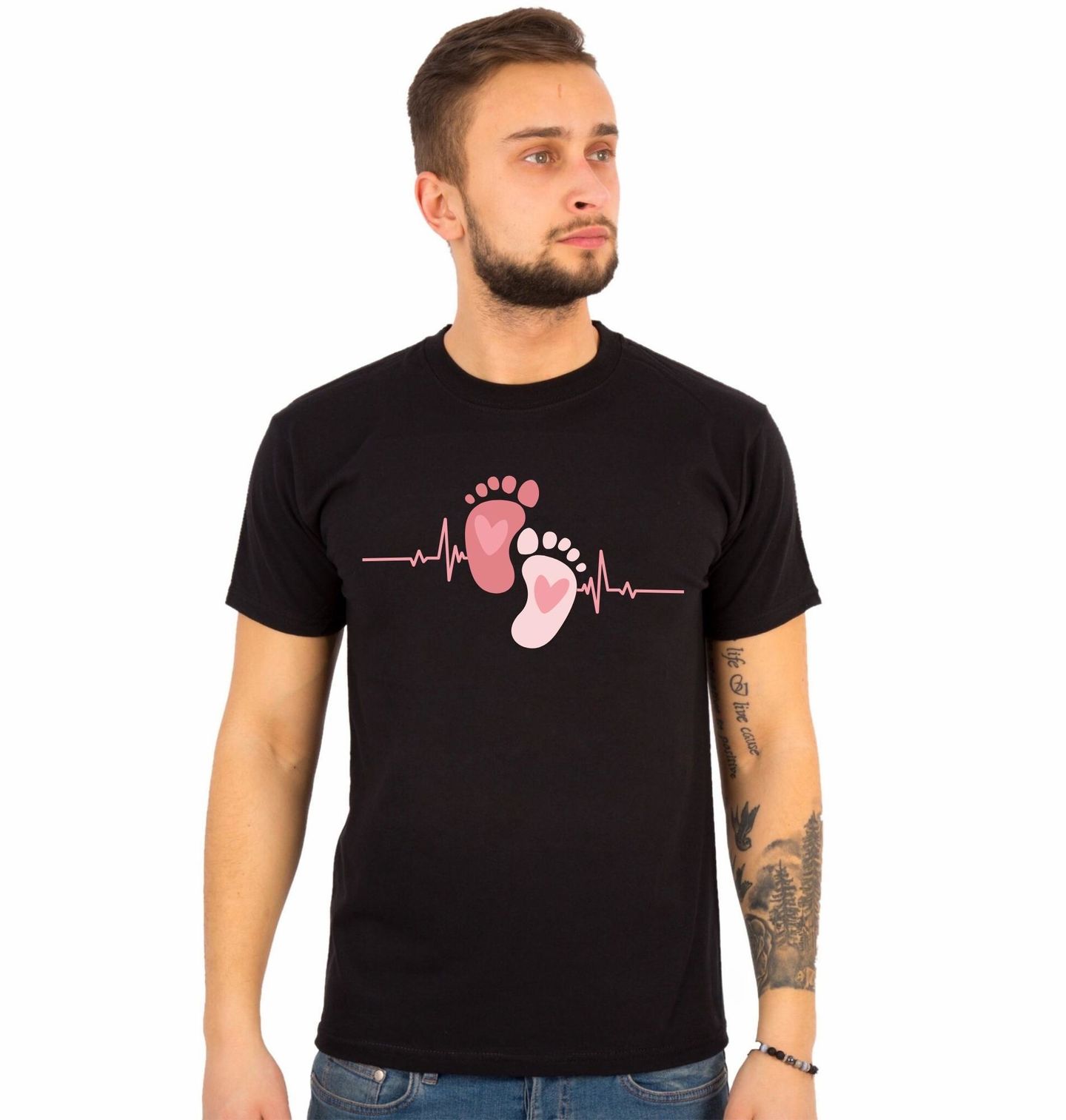 Pánské tričko Růžový Kardiogram a Otisk Dítěte