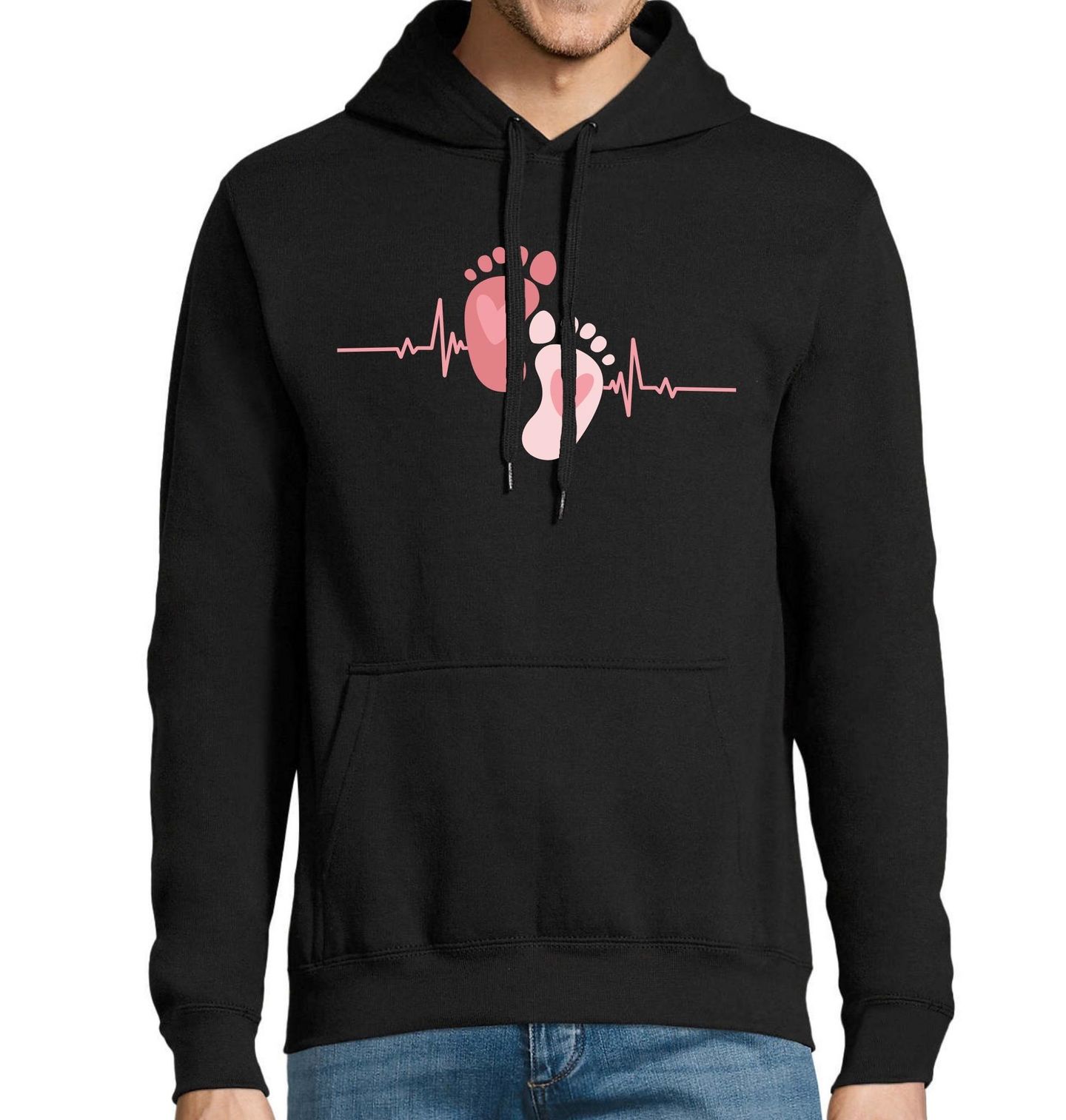 Pánská mikina Růžový Kardiogram a Otisk Dítěte. Jemný a symbolický motiv, kde se propojuje kardiogram se dvěma něžnými stopami, které mohou představovat první otisk nového života i silné rodinné pouto. Design působí citlivě a minimalisticky, takže se skvěle hodí jako dárek k narození dítěte, pro nastávající rodiče nebo jako milá připomínka lásky a blízkosti.