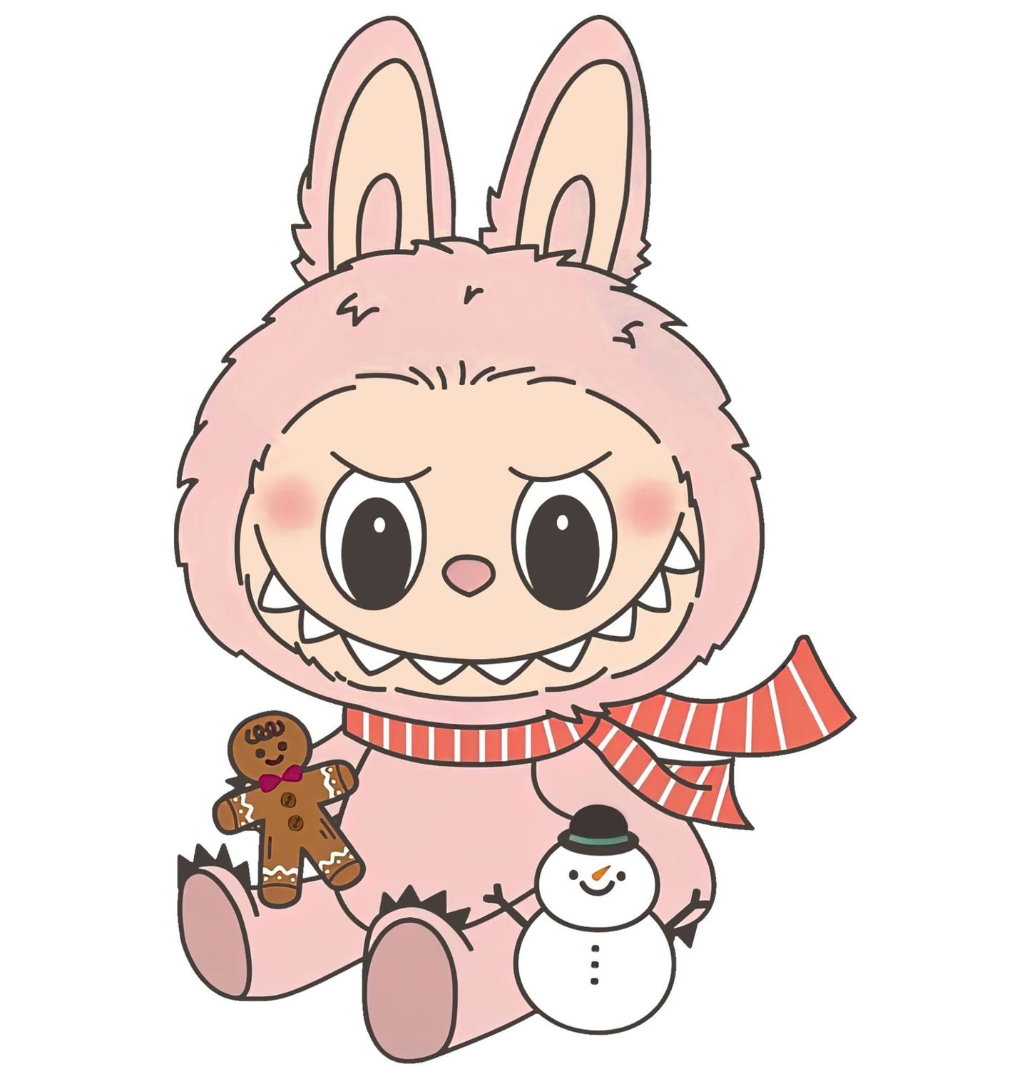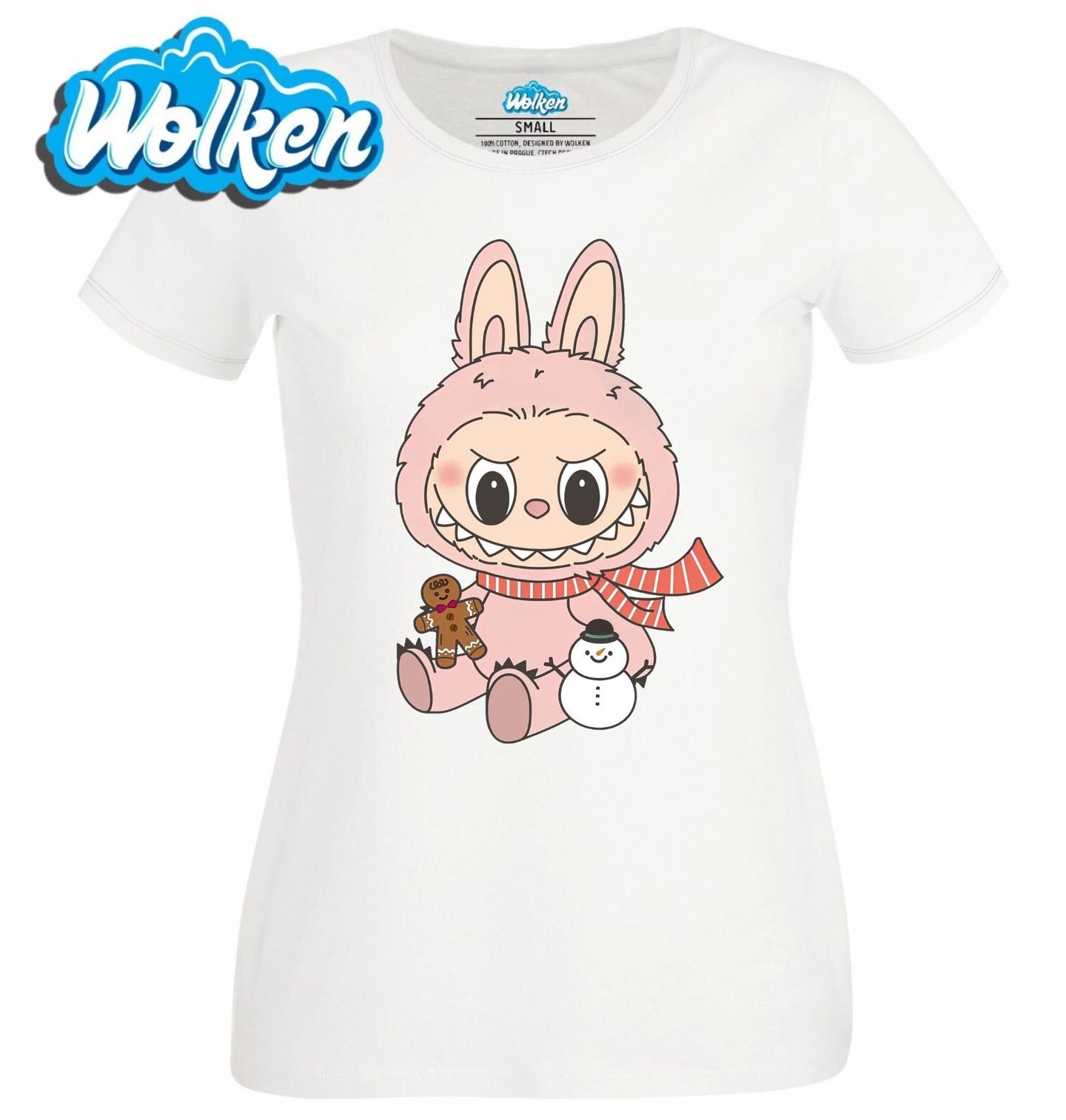 Dámské tričko Růžový Vánoční Labubu. Když se řekne Vánoce, většina z nás si představí vůni perníčků, stavění sněhuláků a pocit radosti – přesně jako na tomto motivu s roztomilým, ale stále trochu zubatým hrdinou jménem Labubu. Labubu si tentokrát užívá Vánoce po svém – v jedné tlapce má perníček, sněhuláka v druhé a šálou kolem krku.