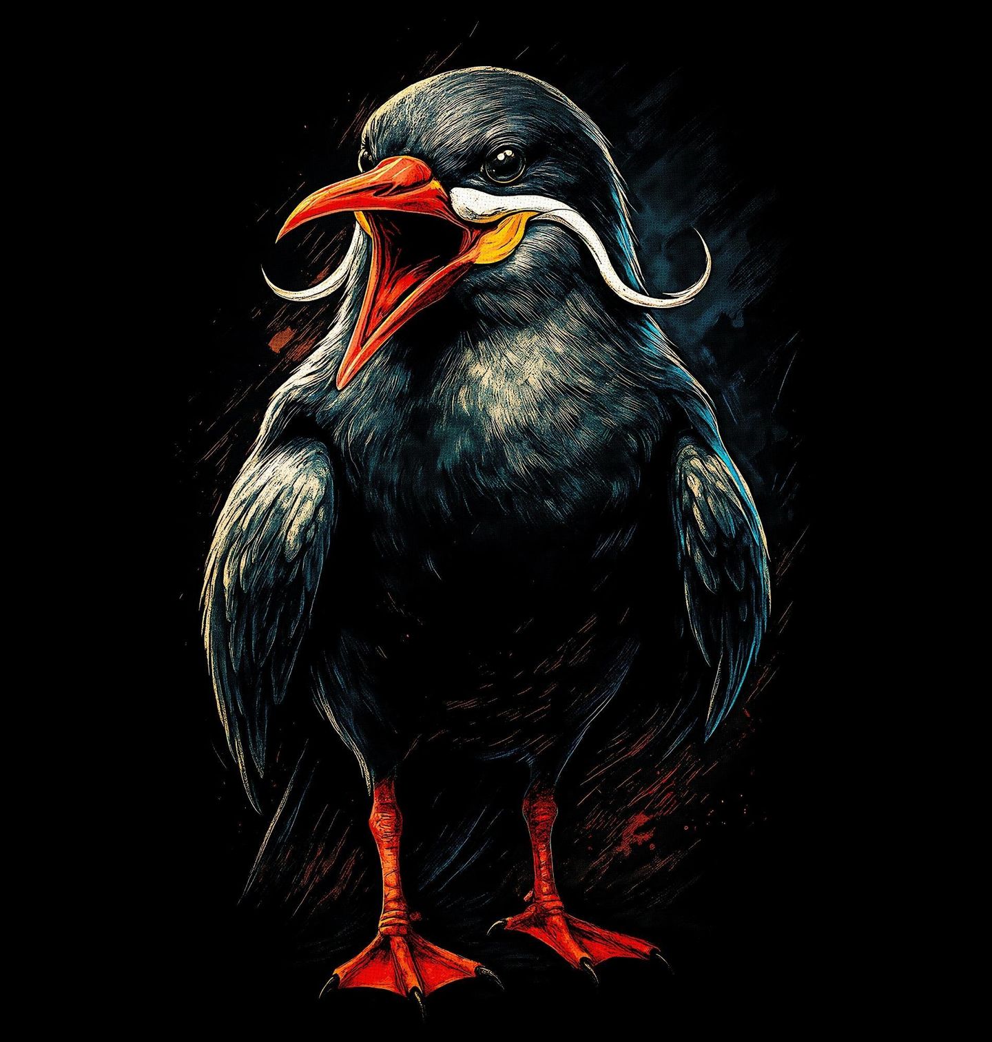 Pánské tričko Rybák inka. Originální motiv zachycuje výrazného ptáka inspirovaného druhem rybák inka, který je známý svými typickými bílými „kníry“ a sytě červeným zobákem. Tento exotický pták pochází z pobřeží Jižní Ameriky a patří mezi nejzajímavější mořské druhy. Rybák inka zaujme nejen svým vzhledem, ale také energickým a lehce komickým výrazem, díky kterému je design nepřehlédnutelný.