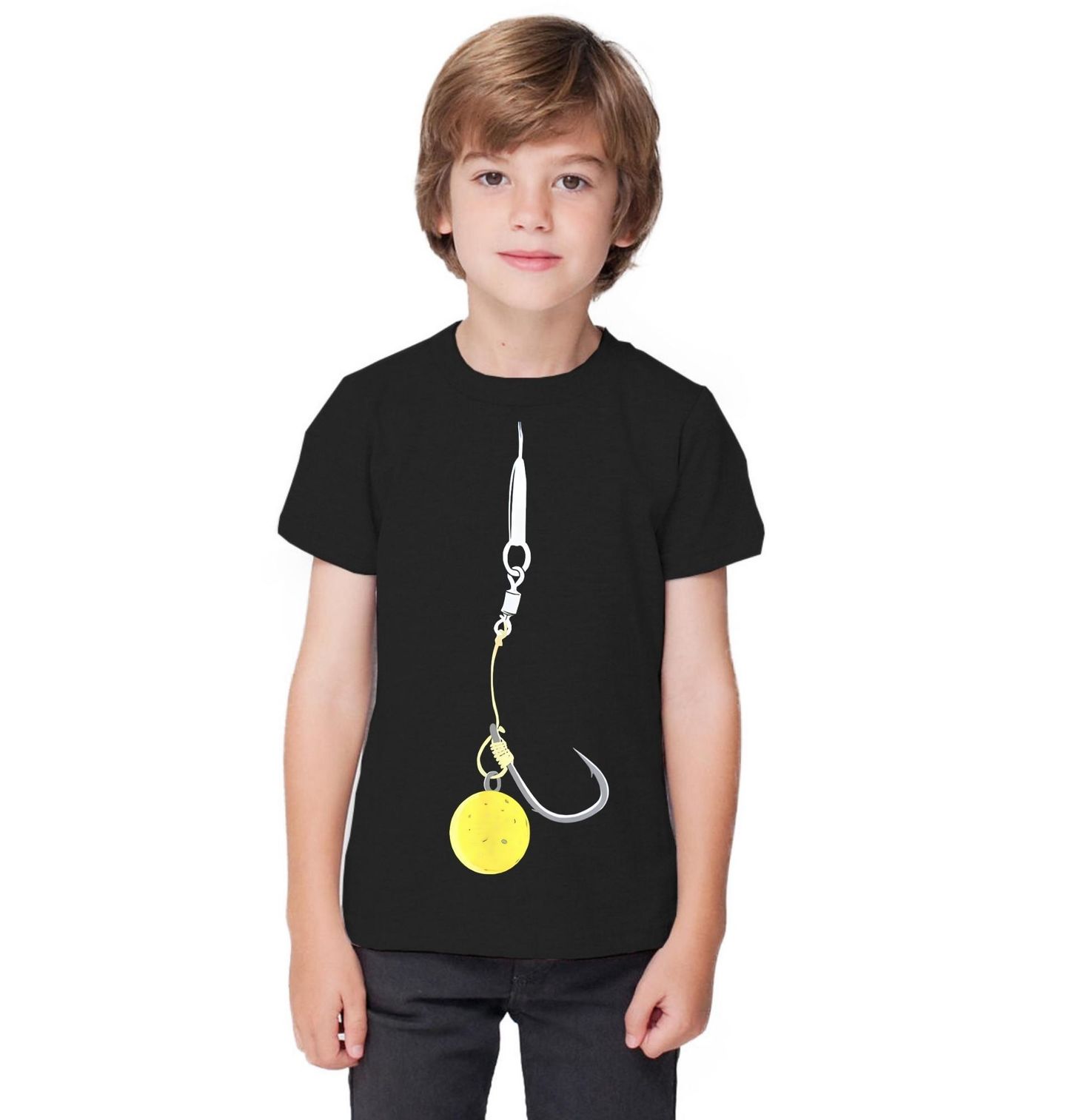Dětské tričko Rybářský Háček s Návdanou. Minimalistický motiv zobrazuje rybářský háček s nástrahou (boilie), připravený na úspěšný lov. Tento design je ideální pro vášnivé rybáře a milovníky rybaření. Detailní zpracování montáže dodává obrázku realistický vzhled. Motiv s klíčovým slovem rybářský háček skvěle vystihuje atmosféru rybaření a čekání na velký úlovek.
