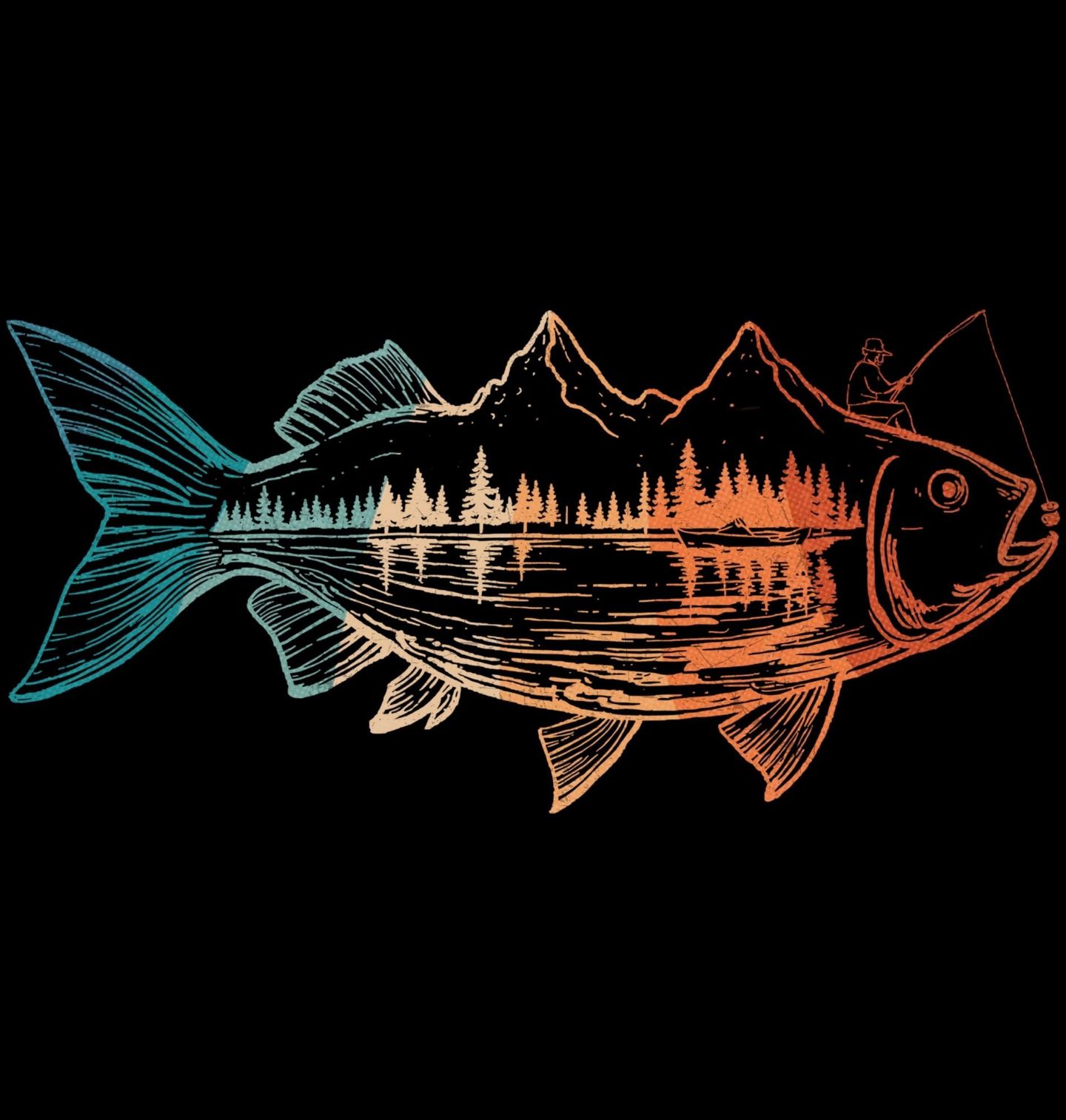 Dámské tričko Rybářský Svět uvnitř Ryby. Motiv, který zachycuje víc než jen rybaření – je to láska k přírodě, horám, vodě a klidným chvílím s prutem v ruce. Dominantní ryba, uvnitř které se skrývá krajina s lesem, horami a rybářem, představuje symbol dokonalého úniku do světa ticha a soustředění.