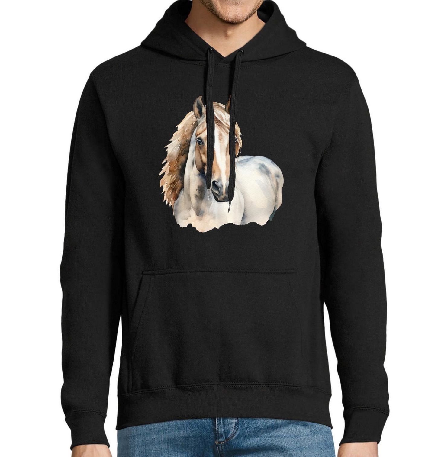 Pánská mikina Ryzí kůň s bílou hřívou. Tento nádherný motiv zachycuje haflinga, plemeno známé svou jemností, inteligencí a odolností. Akvarelový styl dodává lehkost a přirozenou krásu, zatímco pohled tohoto koně v sobě nese klid i divokou svobodu. Ideální volba pro milovníky koní, přírody a stylu, který nikdy nevyjde z módy.