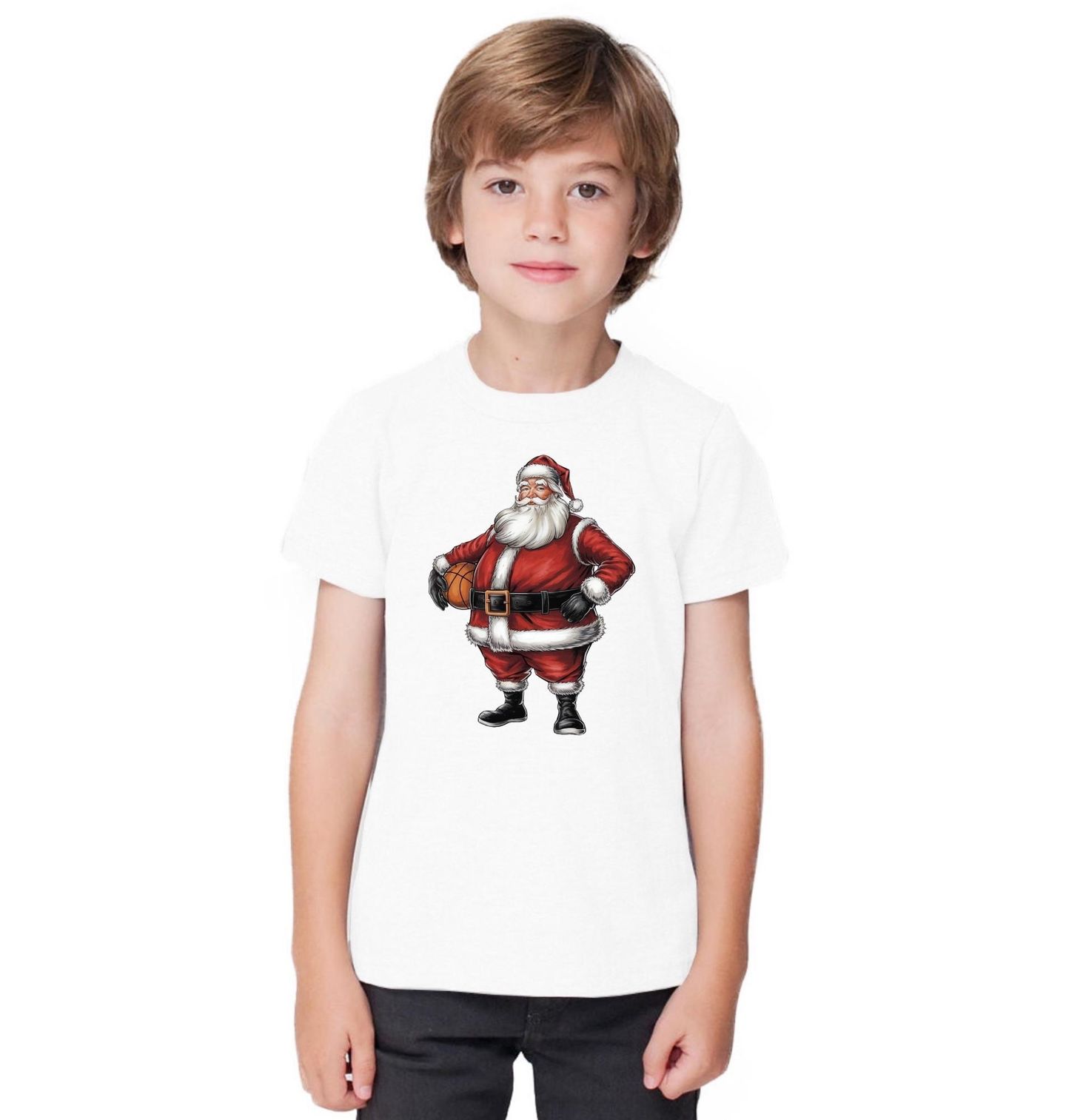 Dětské tričko Santa Basketbalista. Santa Claus s basketbalovým míčem v ruce ukazuje, že i sváteční čas může patřit hře pod košem. Tento design je ideální pro fanoušky sportu, hráče i trenéry, kteří milují basketbal a chtějí si užít Vánoce s humorem a stylem.