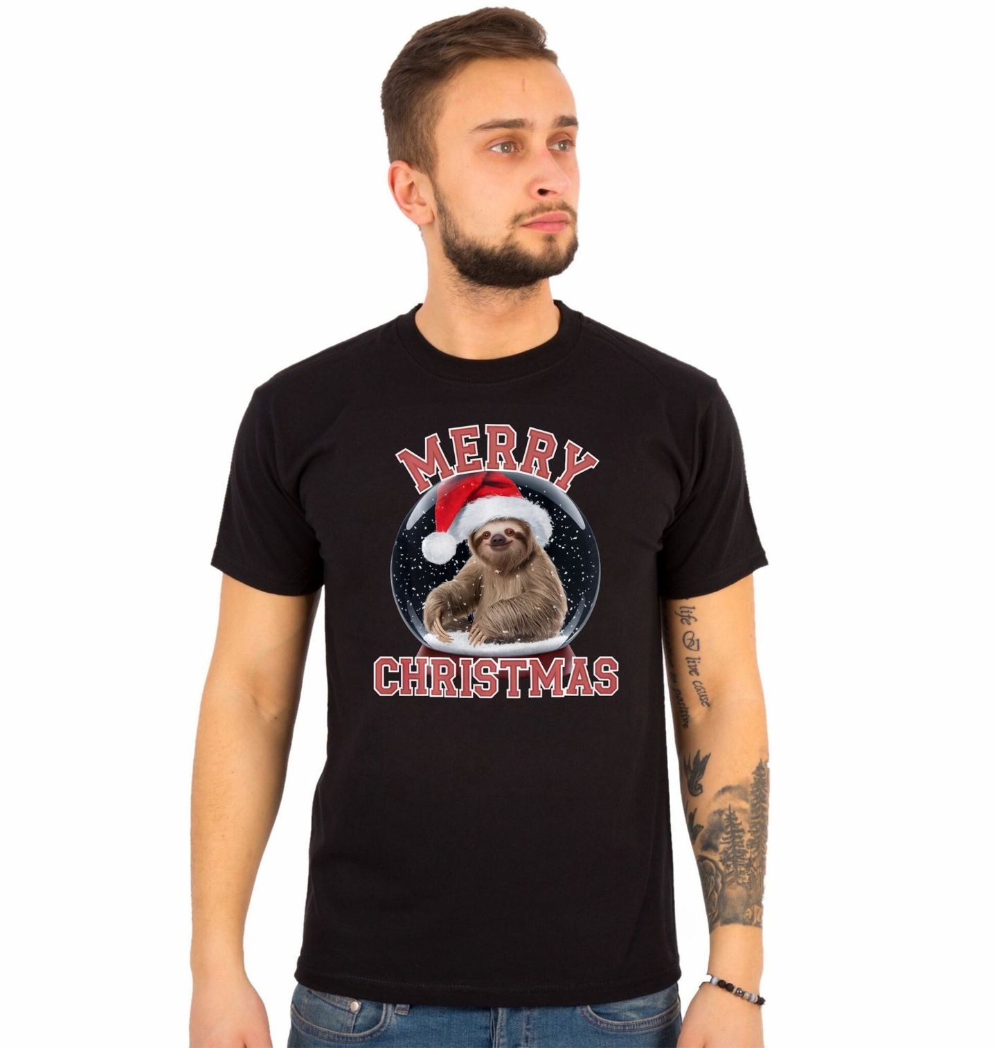 Pánské tričko Santa Lenochod ve Sněžítku. Užijte si pohodové Vánoce s originálním motivem Merry Christmas, na kterém je roztomilý lenochod v Santa čepici ukrytý ve sněžítku. Vánoce, lenochod a sněžítko v jednom dělají z tohoto motivu skvělý dárek pro každého, kdo má rád humor a pohodovou sváteční atmosféru.