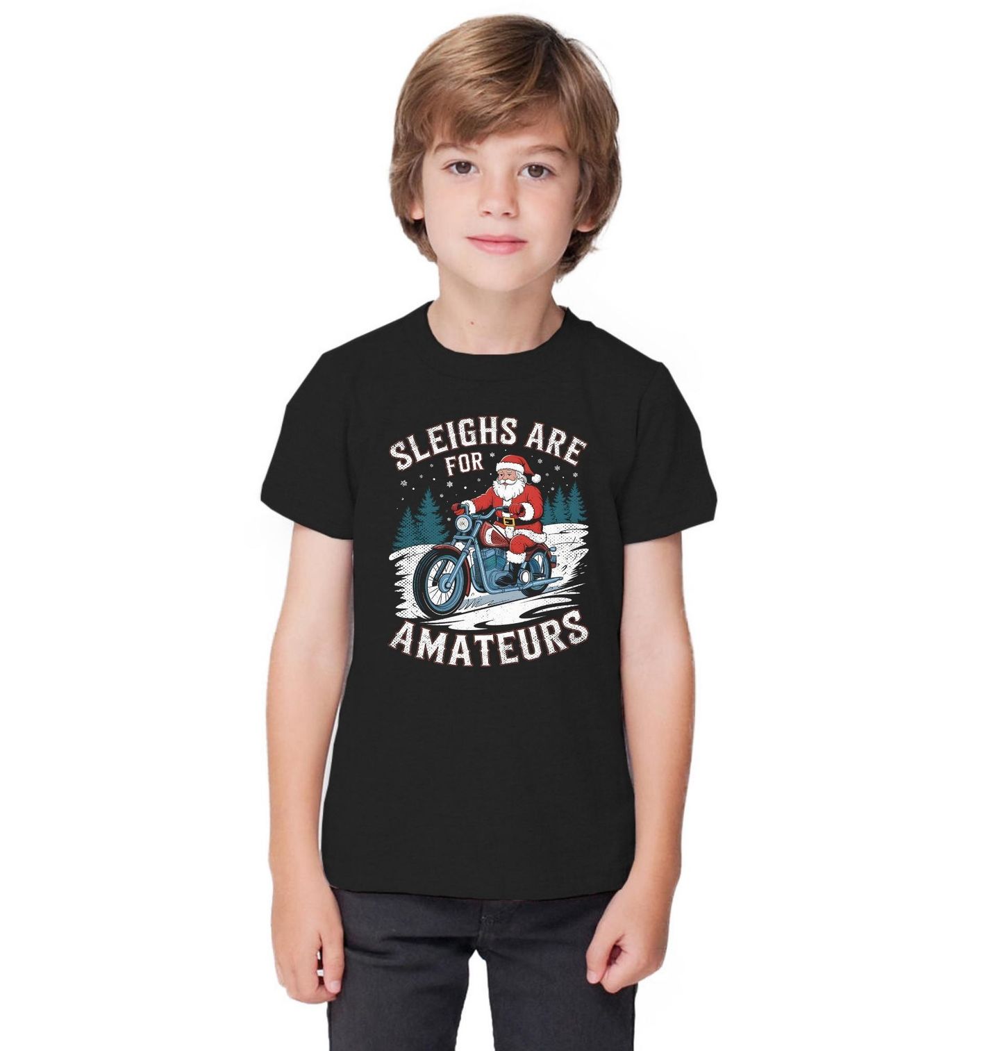 Dětské tričko Santa na Motorce Sáně jsou pro amatéry. “Sleighs are for amateurs.” Zapomeňte na sáně, protože opravdoví jezdci mají pořádnou mašinu! Tento vtipný motiv ukazuje, že i Santa Claus ví, co je nejlepší – místo saní brázdí zasněžené cesty na motorce. Skvělý dárek pro všechny motorkáře, kteří chtějí oslavit Vánoce netradičně a s humorem.