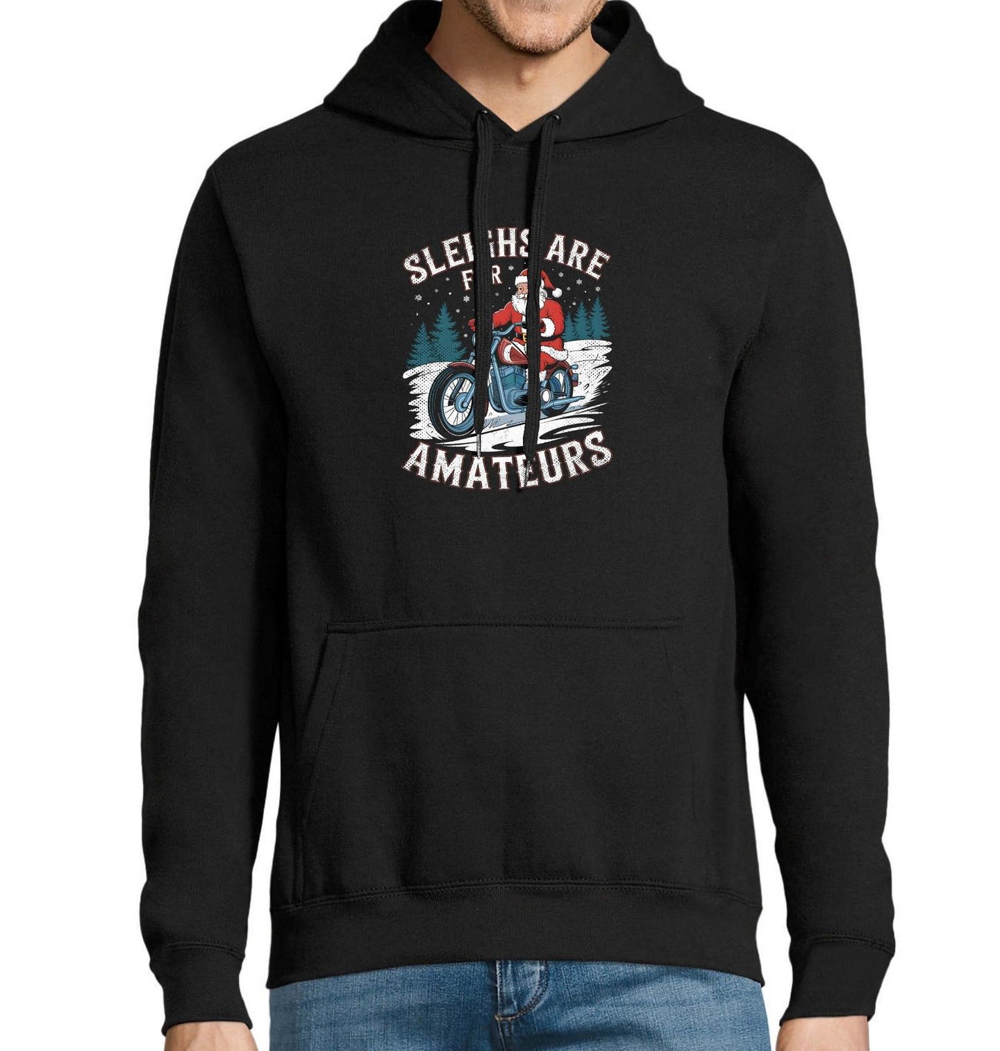 Pánská mikina Santa na Motorce Sáně jsou pro amatéry. “Sleighs are for amateurs.” Zapomeňte na sáně, protože opravdoví jezdci mají pořádnou mašinu! Tento vtipný motiv ukazuje, že i Santa Claus ví, co je nejlepší – místo saní brázdí zasněžené cesty na motorce. Skvělý dárek pro všechny motorkáře, kteří chtějí oslavit Vánoce netradičně a s humorem.