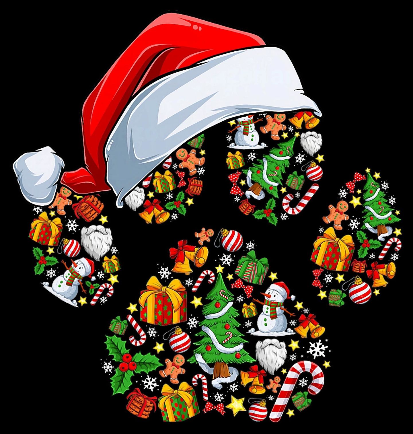 Pánské tričko Santova Psí Tlapka. Když se blíží Vánoce, neměli by zůstat pozadu ani čtyřnozí parťáci! Tento roztomilý potisk ve tvaru tlapky, poskládaný z dárků, stromečků, perníčků a dalších svátečních ikon, potěší každého, kdo miluje psa, je hrdý pejskař a chce, aby tlapky byly součástí sváteční nálady.