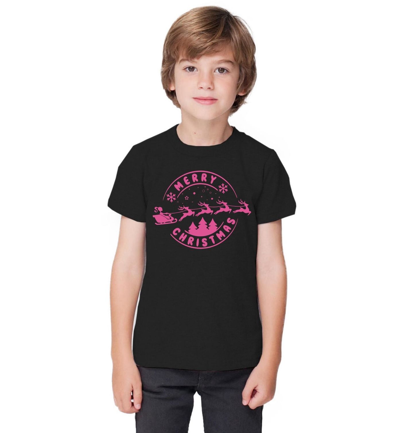 Dětské tričko Santova Žena na Saních. Stylový a originální motiv pro milovníky Vánoc a originality! Tento design zobrazuje siluetu dívky v saních tažených čtyřmi soby, pod noční vánoční oblohou plnou vloček a hvězd. Nápis „Merry Christmas“ doplňuje kouzelnou atmosféru. Ideální pro každou ženu, která miluje Vánoce.