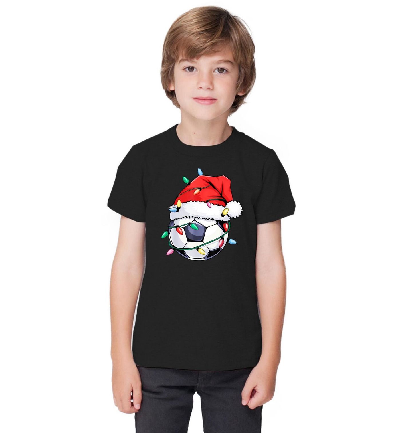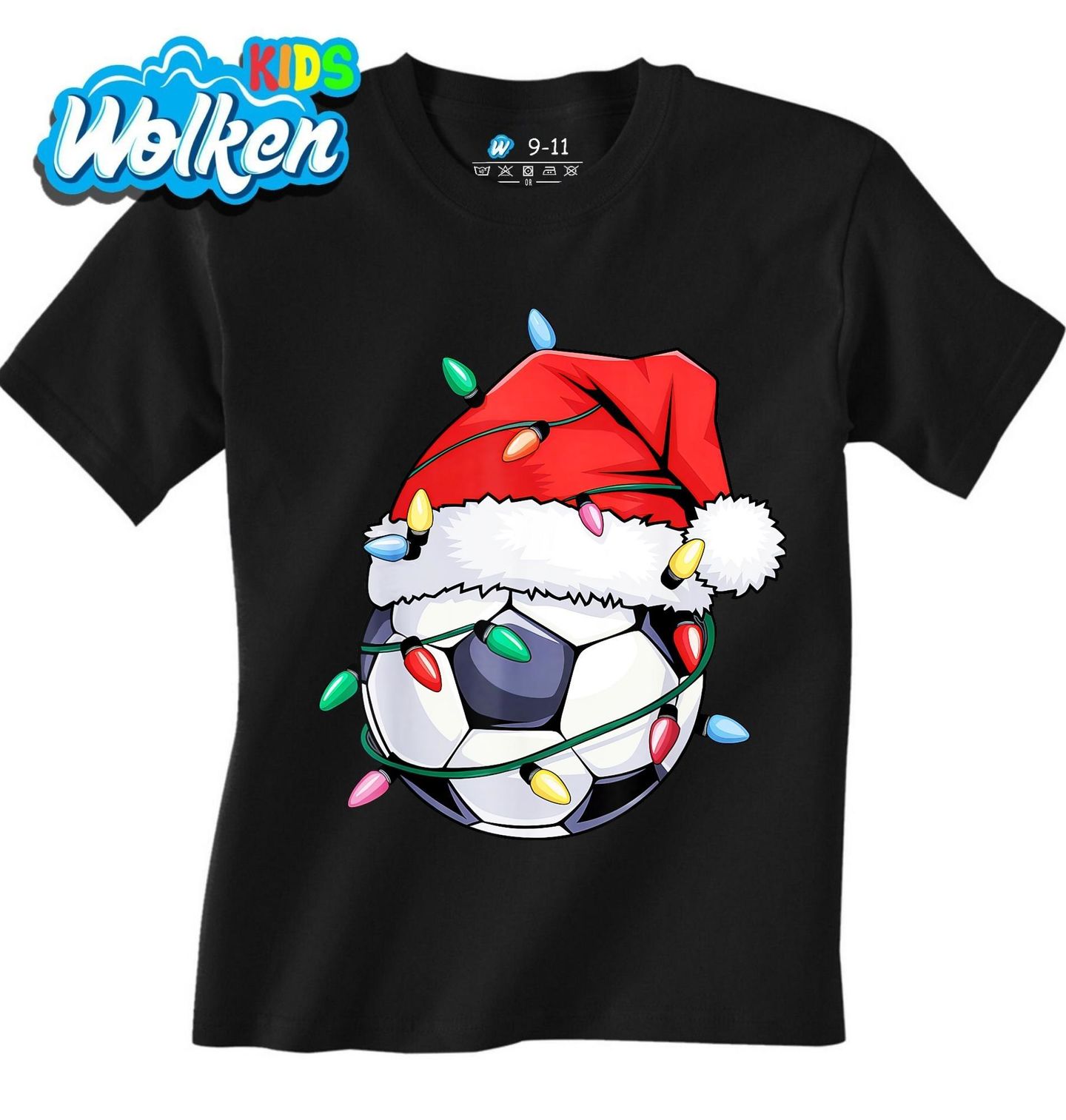 Dětské tričko Santův Fotbalový Míč. Stylový design s tradiční fotbalovou míčem ozdobeným světýlky a Santovou čepicí přináší sváteční atmosféru přímo na hřiště. Ideální pro každého, kdo miluje Vánoce stejně jako kopanou. Skvělý dárek pro fotbalistu, trenéra i fanouška, který nechce o Vánocích sundat kopačky z hlavy – aspoň obrazně.