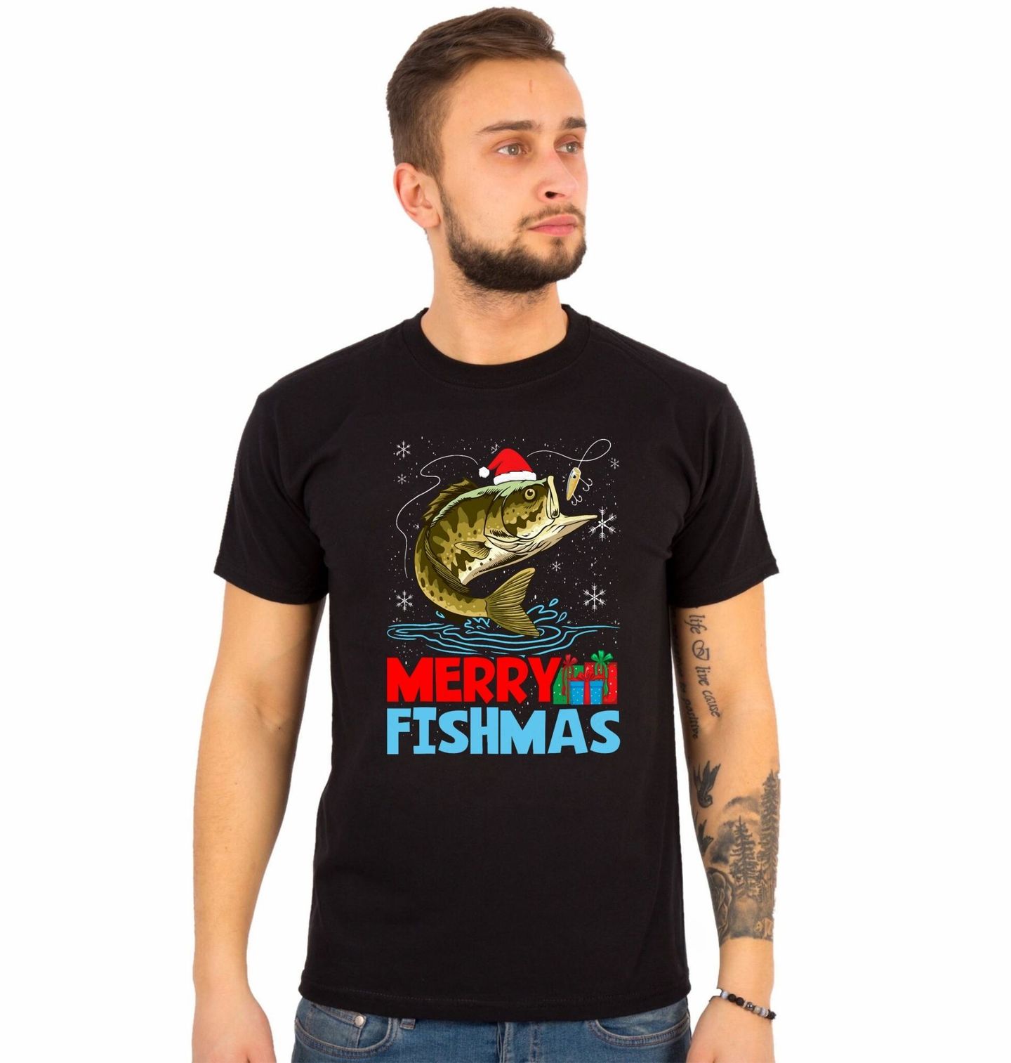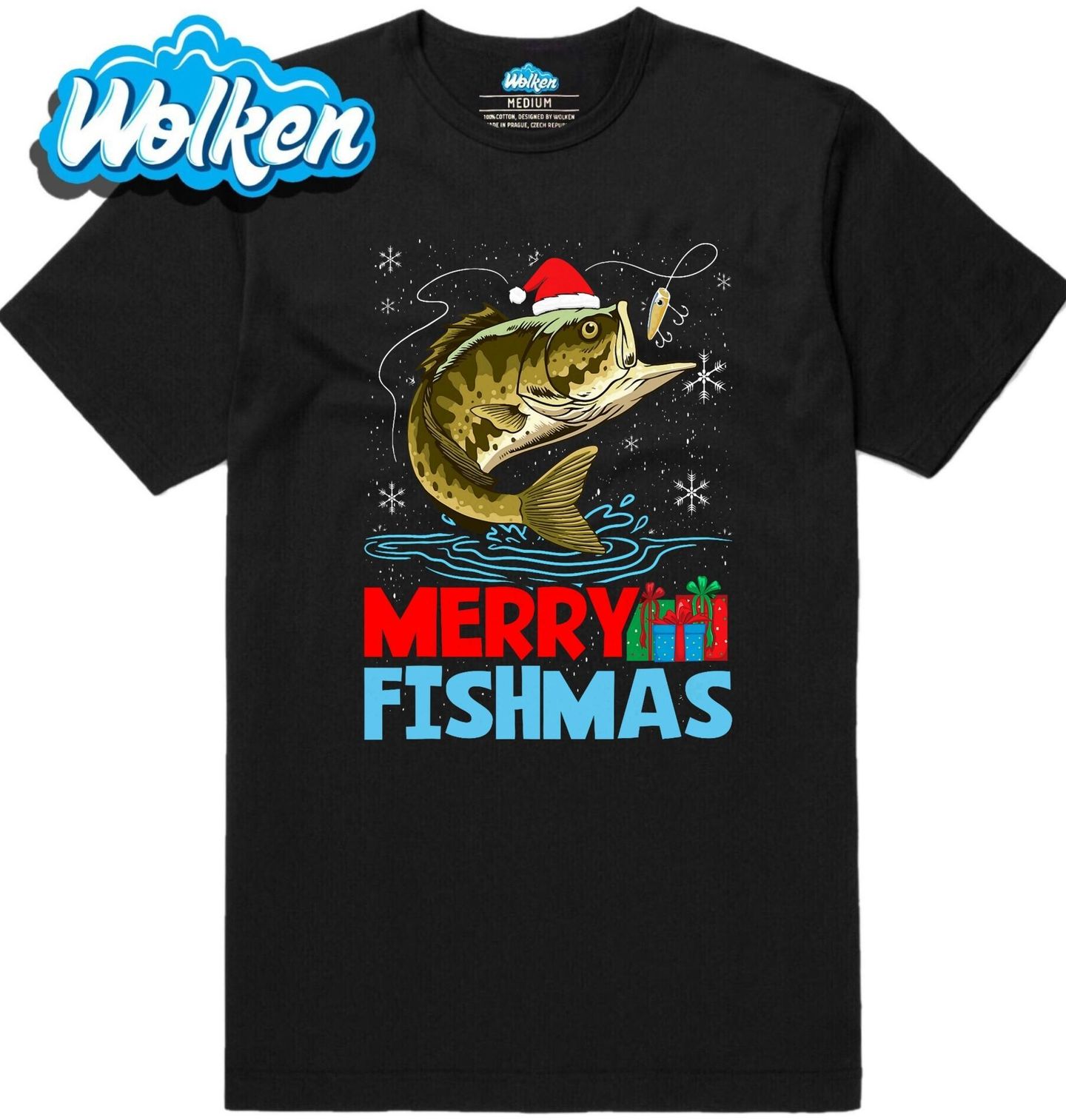 Pánské tričko Santův Okoun na Háčku. Připravte se na sváteční zábavu s motivem Merry Fishmas, který potěší každého rybáře i milovníka originálních vánočních designů. Tento veselý motiv zachycuje rybu – okouna, který skáče z vody s vánoční čepicí na hlavě, připravený na pořádné rybaření i během Vánoc.