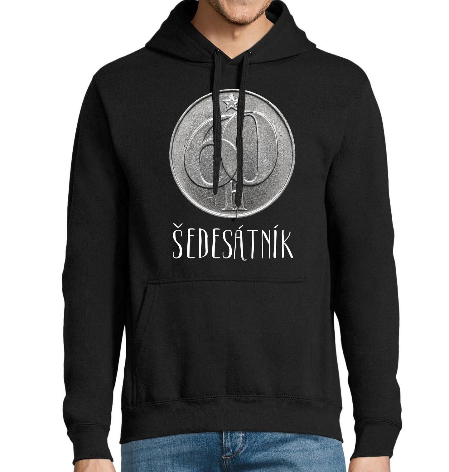 Pánská mikina Šedesátník 60 haléřů. Originální motiv Šedesátník je skvělou volbou pro každého, kdo slaví 60. narozeniny a chce své kulatiny pojmout s humorem a retro nádechem. Design inspirovaný starou mincí a estetikou ČSSR zaujme na první pohled a potěší každého oslavence, který má rád výrazné, vtipné a nostalgické motivy.