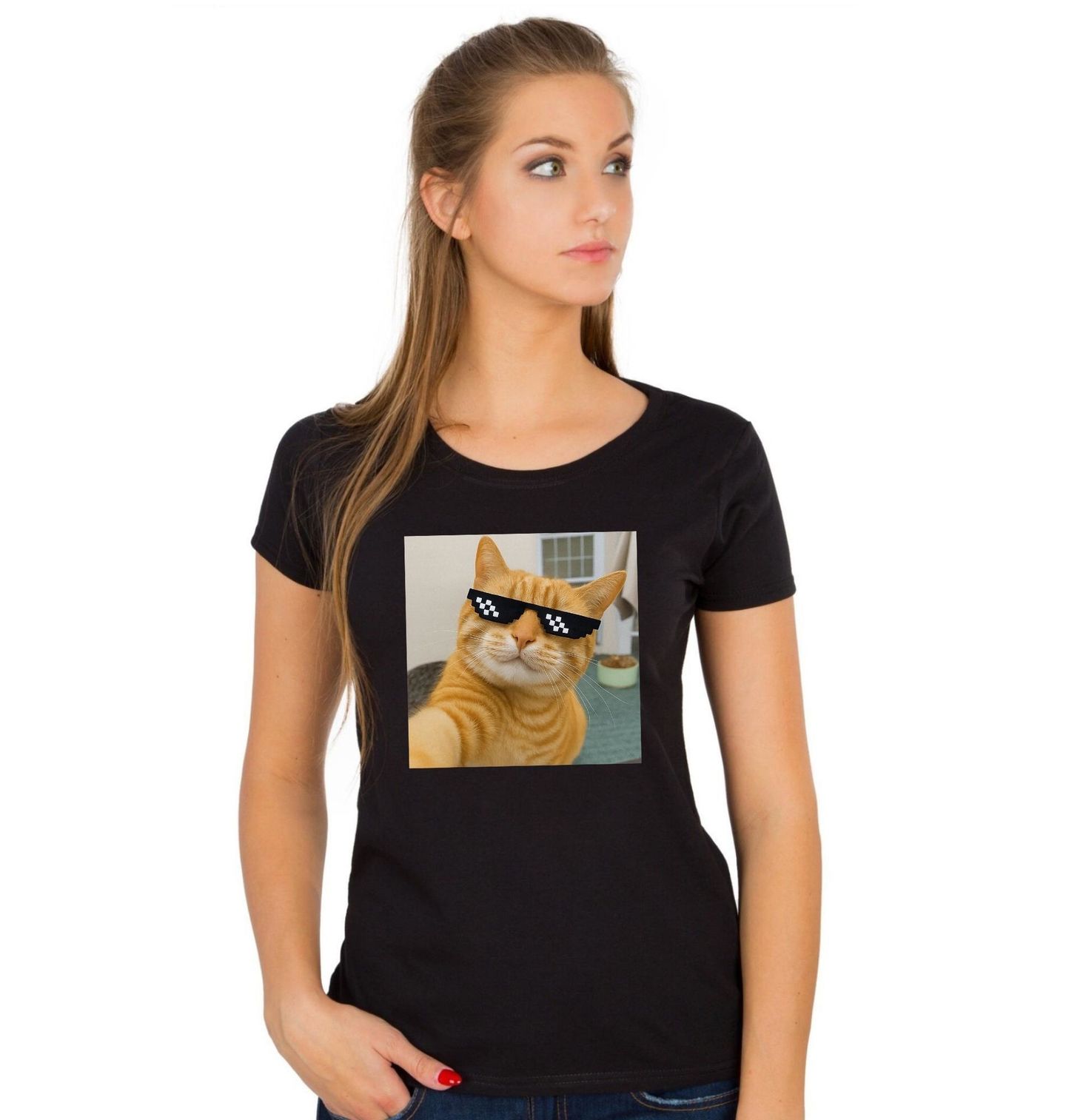 Dámské tričko Selfie Kočka se Stylovými Brýlemi