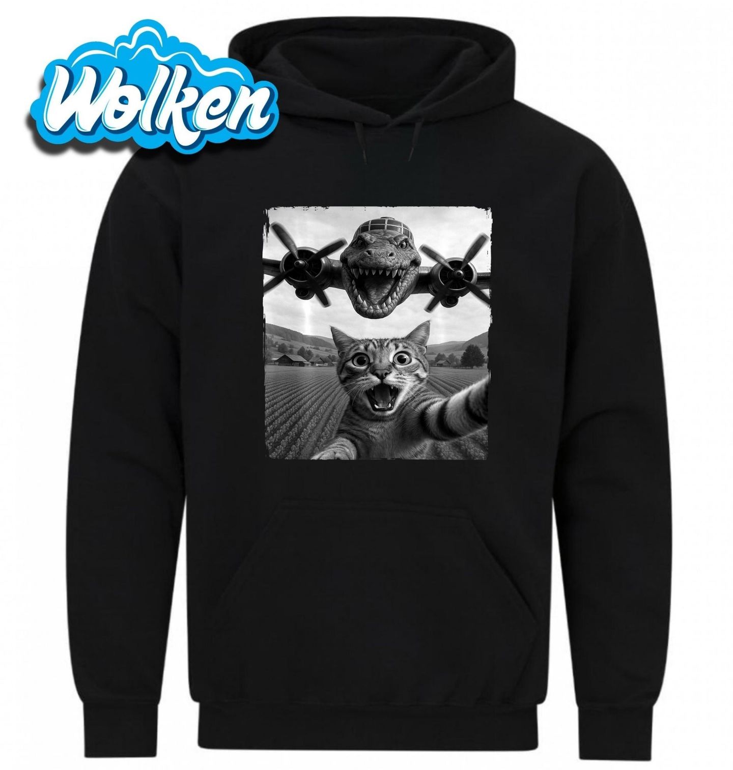 Pánská mikina Selfie Kočky a Útok Bombardina. Tahle kočka si jen chtěla udělat klidnou selfie… než se z nebe snesl Bombardino Crocodilo – letadlo s hlavou krokodýla, hrdina nejšílenějších italských brainrotů. Černobílý retro styl dodává scéně extra absurditu, zatímco výraz kočky mluví za vše. Ideální tričko pro milovníky meme kultury.