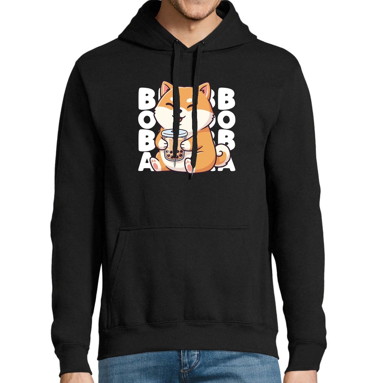 Pánská mikina Shiba-Inu s Bubble Tea BOBA. Tento veselý motiv BOBA BOBA BOBA spojuje dvě srdcovky – sladké bubble tea a roztomilého psa plemene Shiba Inu. Skvělý dárek pro každého pejskaře, kterému dělá radost kombinace dobrého pití a ještě lepší psí společnosti. Pes, bubble tea a pořádná dávka roztomilosti – co víc si přát?