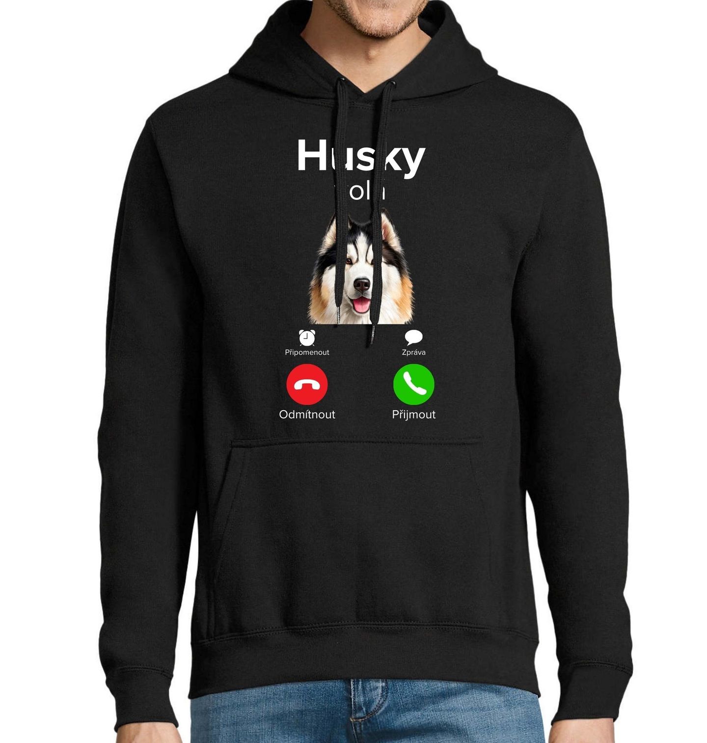 Pánská mikina Sibiřský husky volá Phone Call. Jakmile tento pes volá, žádný správný pejskař neváhá a okamžitě „přijme“. Sibiřský husky je pes známý svou vytrvalostí, inteligencí a svobodnou povahou. Miluje pohyb, dobrodružství a svou smečku, kterou bezmezně zbožňuje. Každý pejskař ví, že život s tímto plemenem je plný akce, zábavy a nezapomenutelných zážitků.