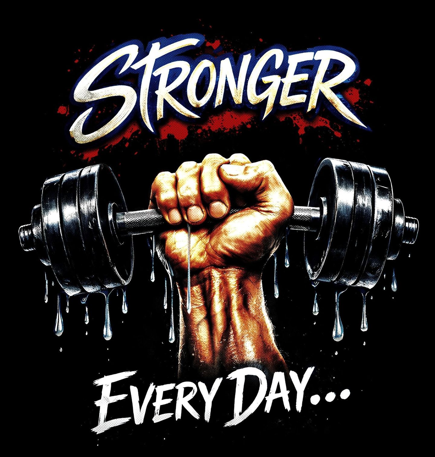 Pánské tričko Silnější Každý Den Stronger Every Day. Motiv, který mluví za všechno – síla, odhodlání a každodenní dřina. Tento design zachycuje pevně sevřenou ruku držící činku, symbolizující gym a neustálé posilování, které tě posouvá dál. Kapky potu a drsný styl podtrhují realitu tvrdého tréninku. Gym není jen místo – je to životní styl. Posilování je cesta, kde každý den znamená progres.