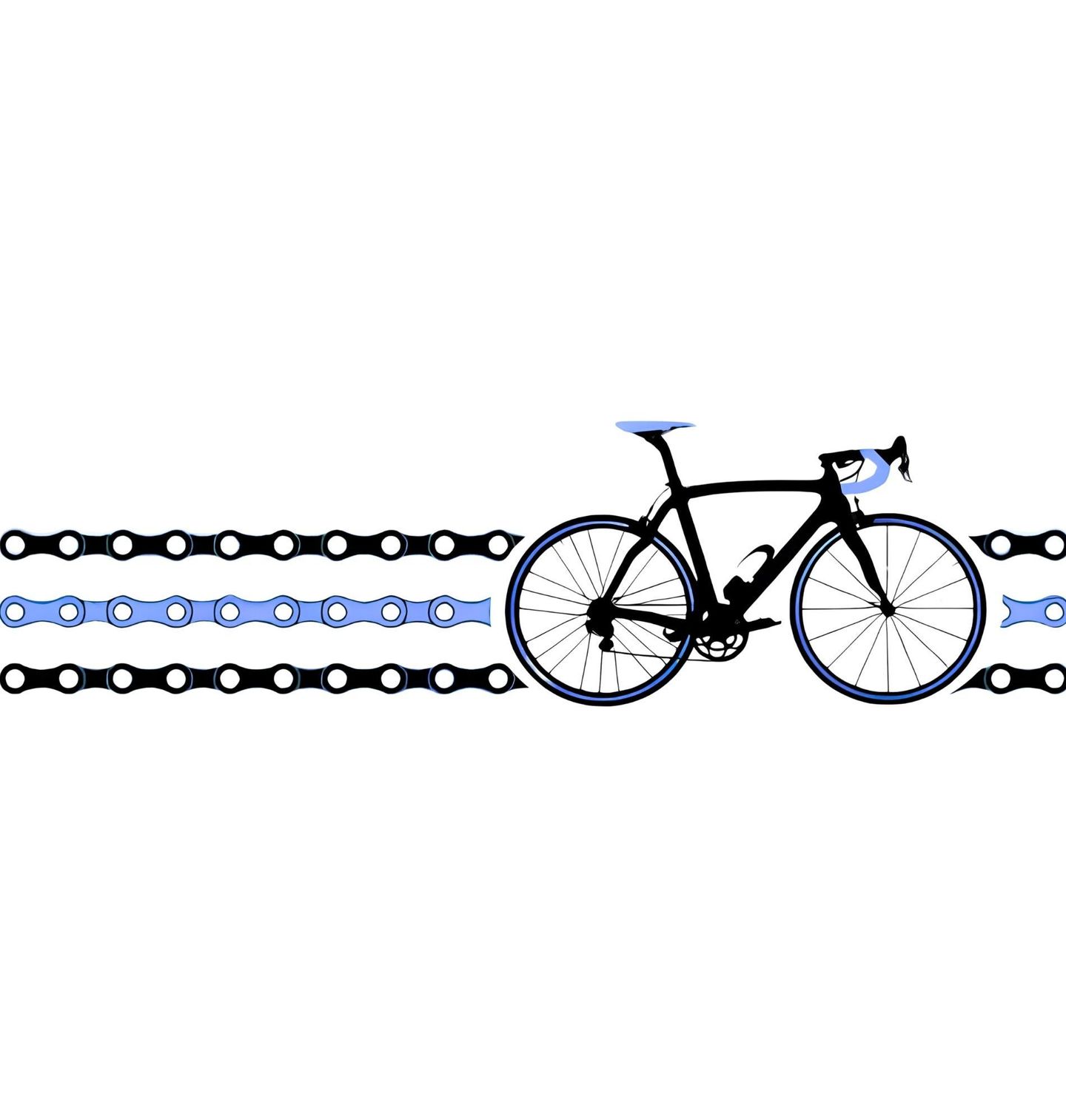 Dámské tričko Silniční Kolo s Řetězem. Minimalistický design silničního kola doplněný grafickými prvky cyklistického řetězu, který se táhne po obou stranách. Kombinace černé a modré barvy zdůrazňuje technický styl a dynamiku jízdy. Motiv symbolizuje rychlost, výkon a propojení člověka se strojem.