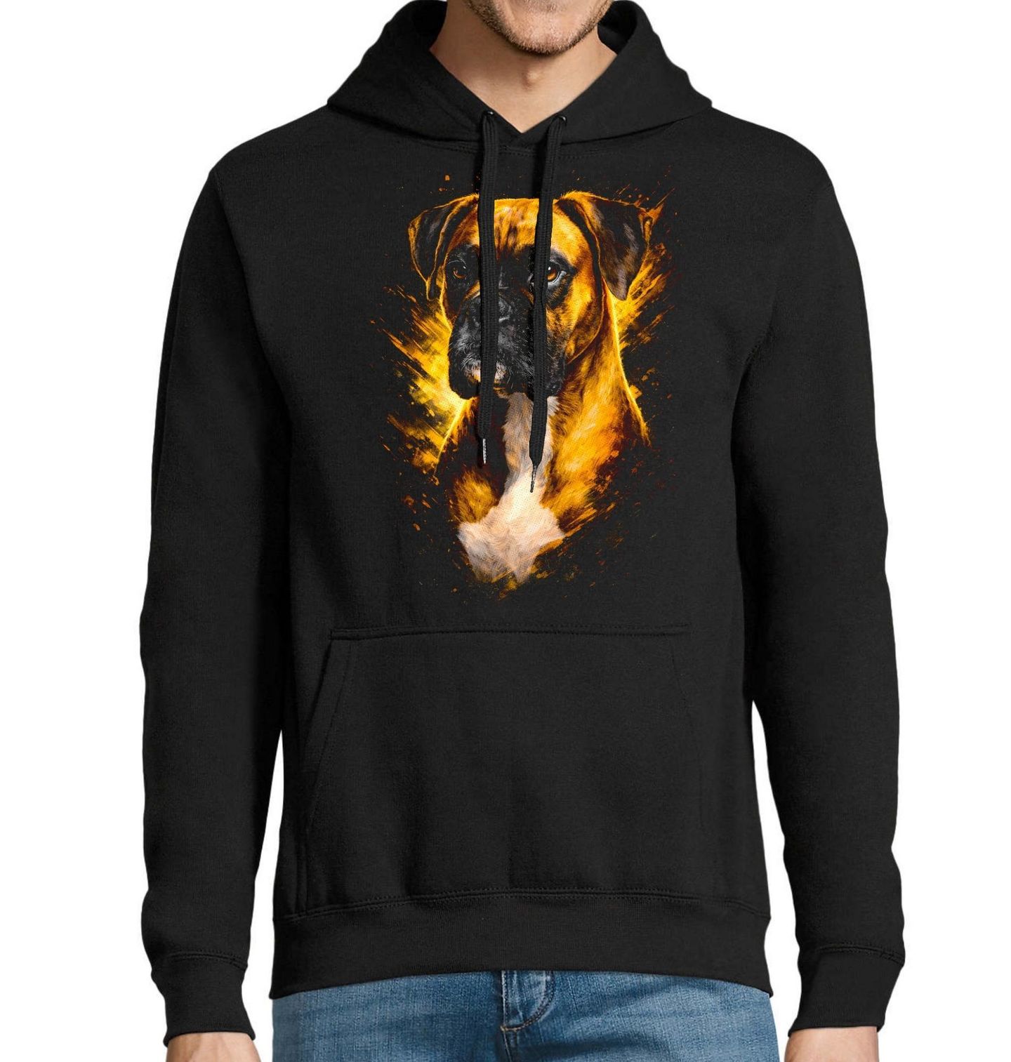 Pánská mikina Silný Boxer. Tento výrazný motiv zachycuje plemeno Boxer, které je známé svou silou, energií a oddaností. Detailní portrét zvýrazňuje typické rysy – svalnatou postavu, krátkou srst a charakteristický výraz, který z tohoto plemene dělá jedinečného společníka. Každý pejskař si v tomto motivu najde symbol věrnosti a přátelství. Boxer je hravý, inteligentní a ochranitelský pes, který miluje svou rodinu a je skvělým parťákem pro aktivní život.