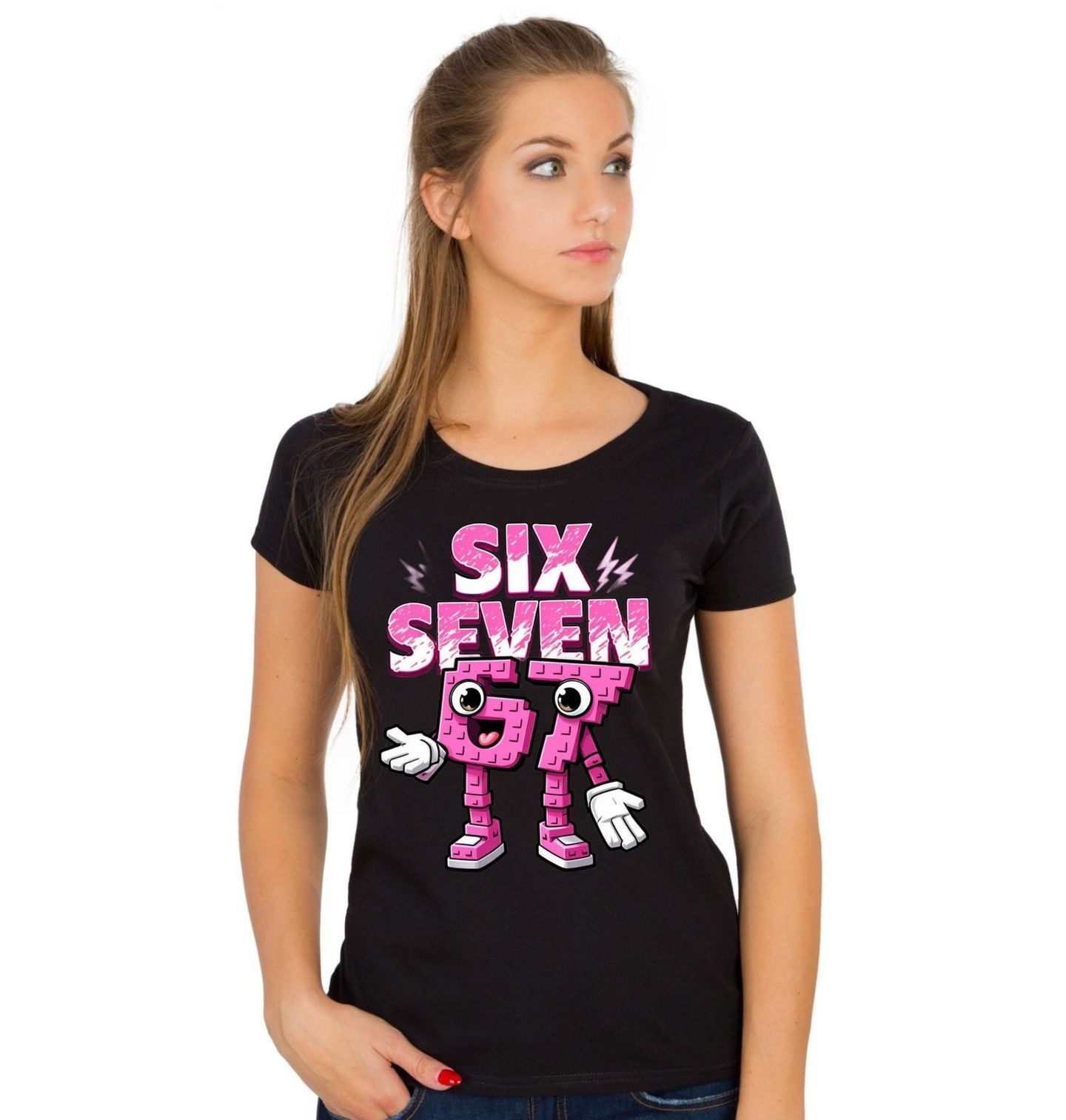 Dámské tričko Six Seven Neonově Růžové Lego 67. Tento design s číslem 67 v růžovém stylu s efekty přináší energii a hravost. Text „Six Seven “ se překládá jako „šest sedm “ a podtrhuje moderní charakter motivu. Skvělý kousek pro všechny, kdo chtějí být vidět.