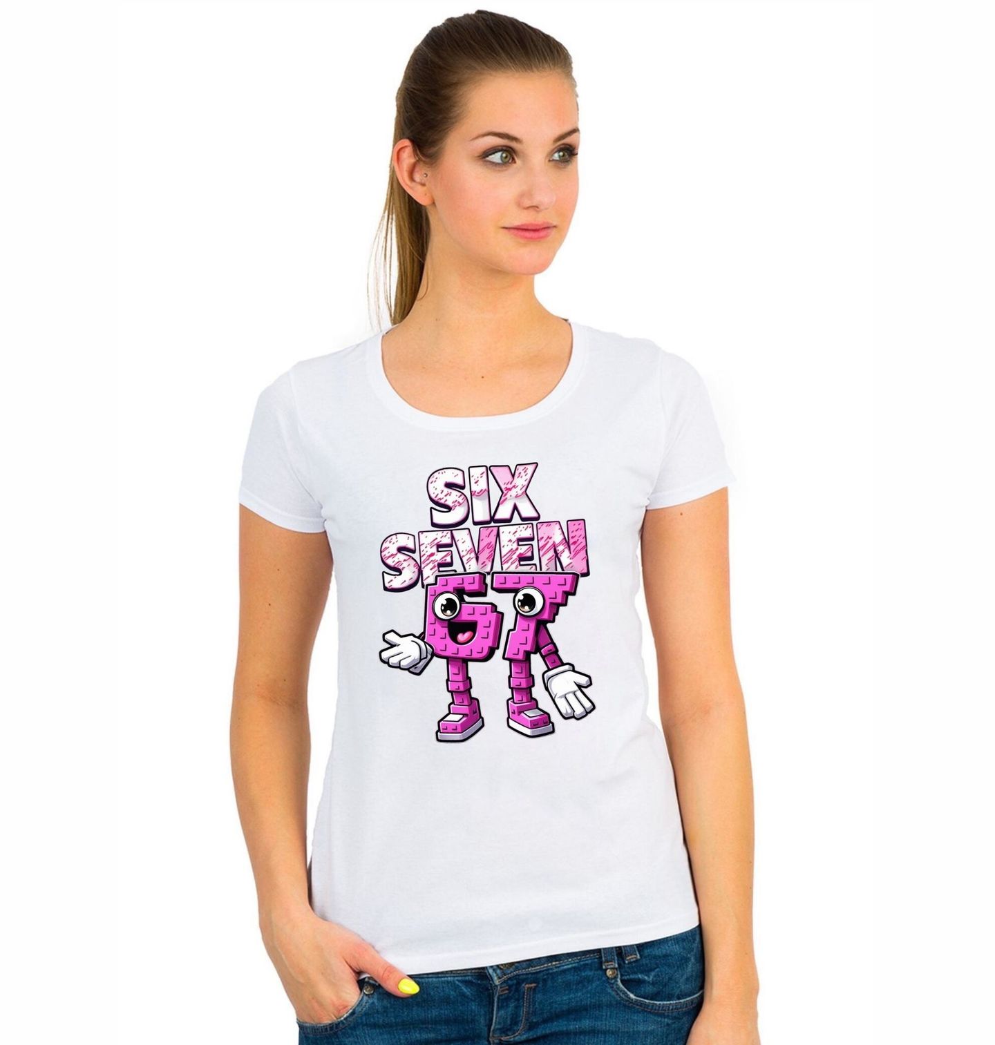 Dámské tričko Six Seven Růžové Lego 67. Tento výrazný design kombinuje čísla a postavičku z lega do zábavného motivu, kde dominuje číslo 67 v hravém stylu. Text „Six Seven “ lze přeložit jako „šest sedm “ a dodává motivu moderní vibe. Design je ideální pro ty, kdo chtějí vystoupit z davu a ukázat svou energii i smysl pro humor.