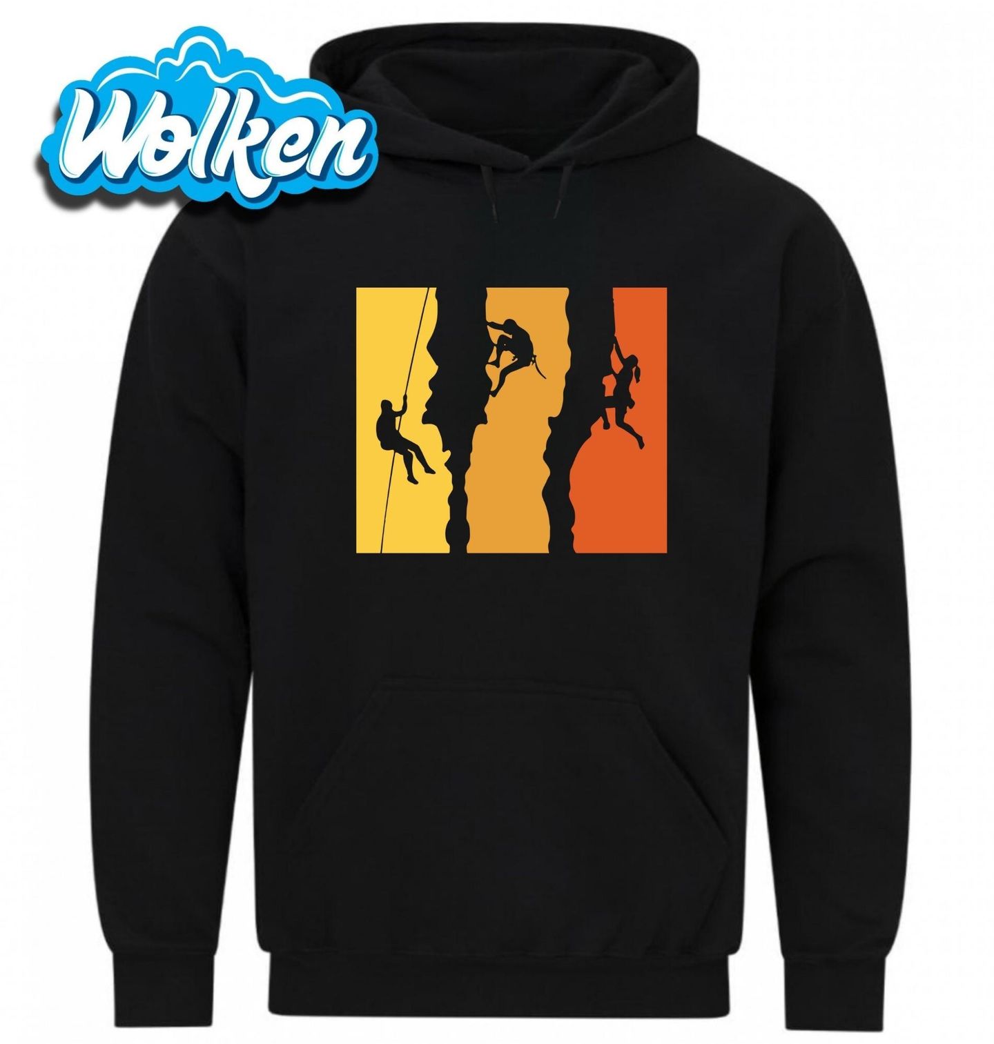 Pánská mikina Skalní horolezci Retro Hiking. Přeneste se do zlatých časů outdoorových dobrodružství s tímto stylovým tričkem ve vintage stylu. Siluety horolezců na barevném retro pozadí zachycují vášeň pro lezení, přírodu a překonávání výzev. Ideální pro každého milovníka horolezectví.