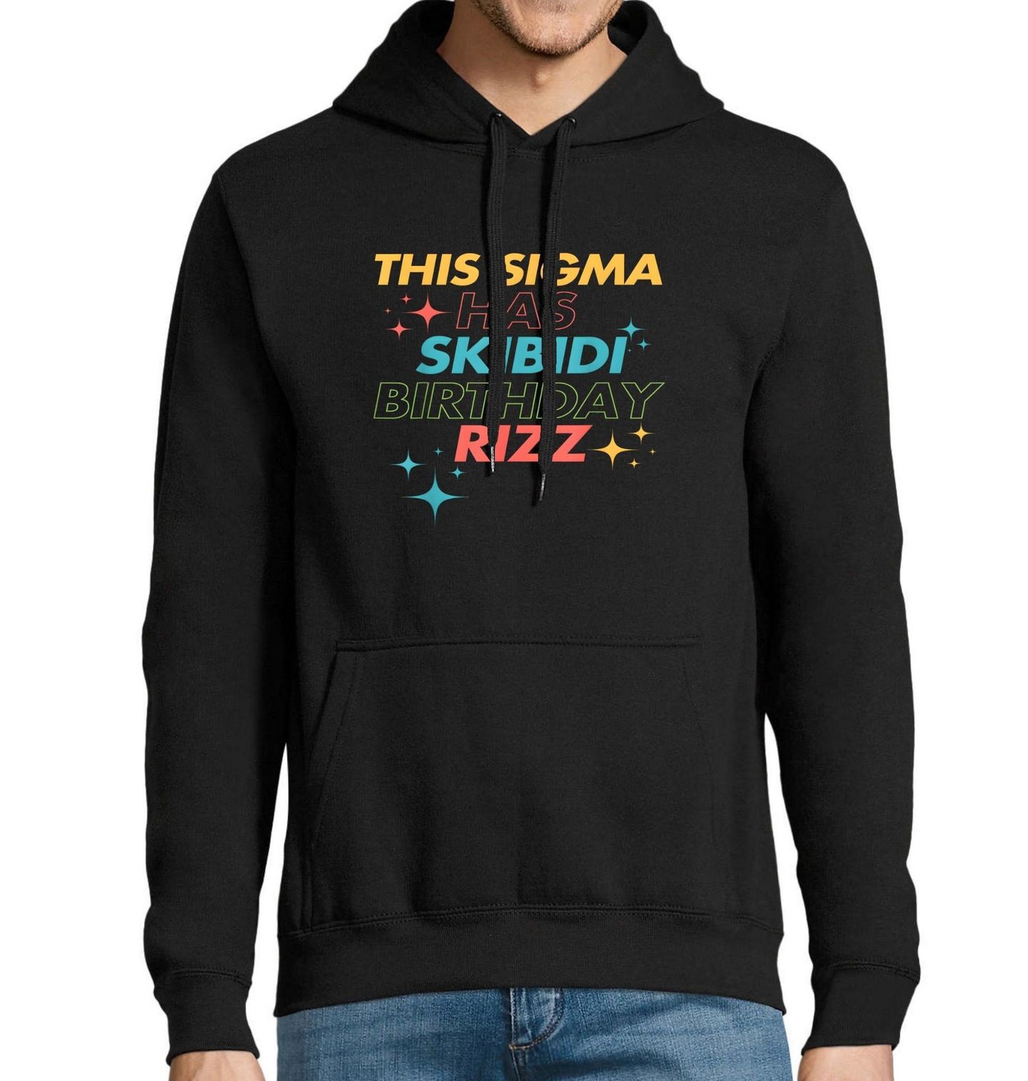 Pánská mikina Skibidi Sigma Narozeniny. „THIS SIGMA HAS SKIBIDI BIRTHDAY RIZZ“ v překladu „Tenhle borec má skibidi narozeninový šarm“. Hledáš ultimátní dárek pro malého (nebo velkého) meme hráče? Skibidi, sigma energy, birthday rizz a narozeniny = W combo.