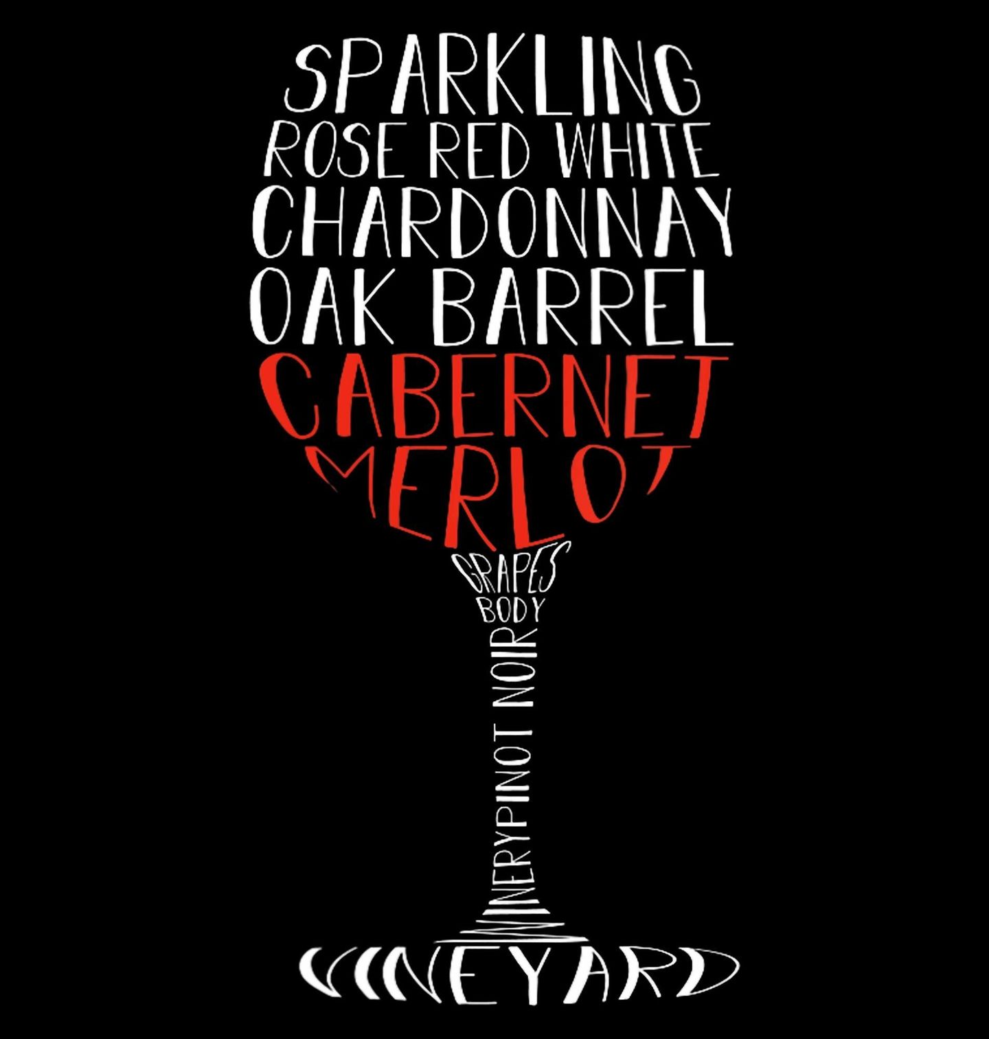 Dámské tričko Sklenka Degustéra. Motiv obsahuje druhy vína: Sparkling, Rose, Red, White, Chardonnay, Oak Barrel, Cabernet, Merlot, Grapes, Body, Pinot Noir, Winery, Vineyard. Pokud je víno tvou vášní, tohle umělecké ztvárnění ti ji připomene při každém pohledu. Skvělé pro milovníky vína, vinaře nebo dárek na degustaci.