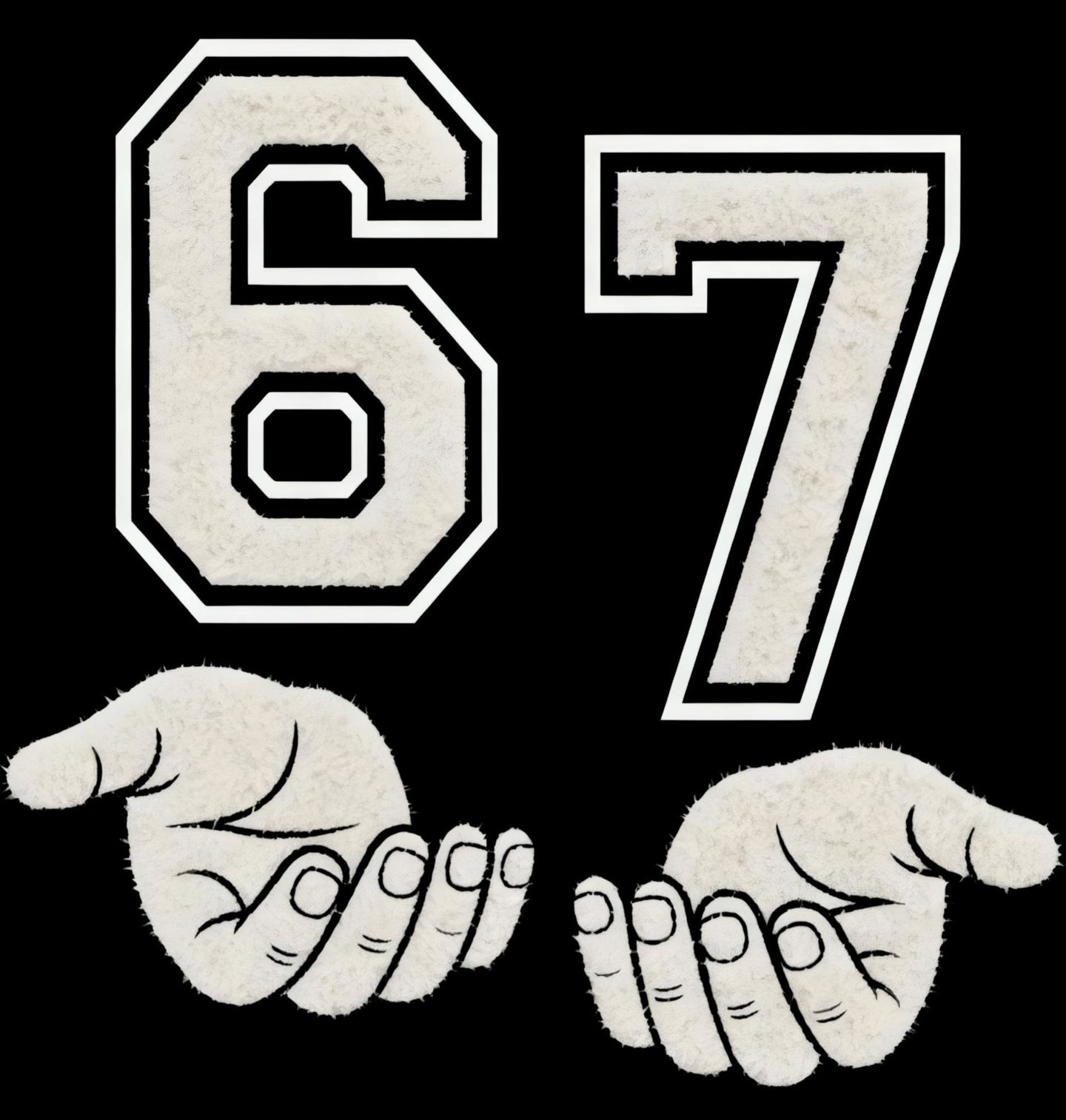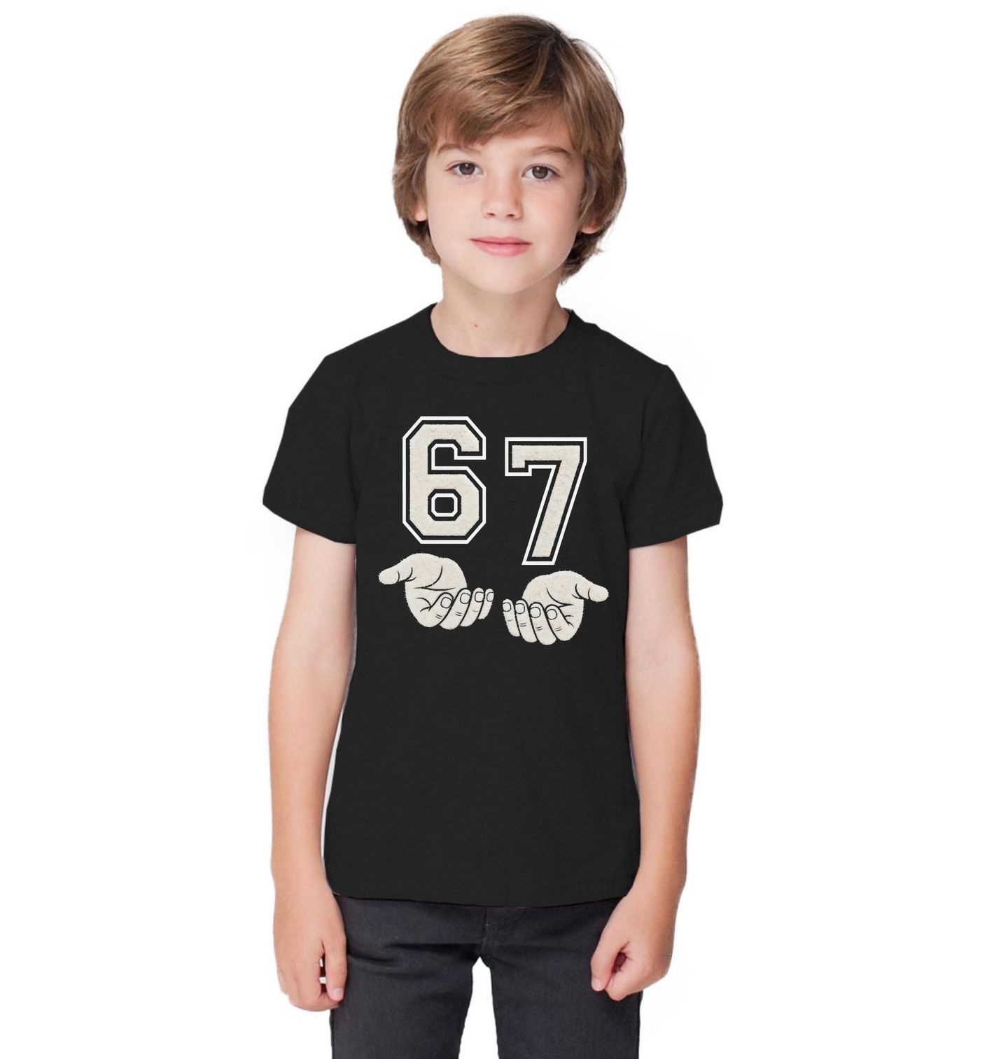 Dětské tričko Školní Meme 67 v Sametových Rukou Six Seven. Originální motiv 67 pro všechny fanoušky čísla six seven a zábavných trendů meme. Velké číslo 67 je zpracované ve stylu školních univerzit nápisů a vizuálně připomíná samet nebo plstěnou nášivku, jakou znáš ze školních bund. Pod číslem jsou stylové ruce, které jako by 67 podpíraly – jednoduchý, ale výrazný design, který zaujme na první pohled.