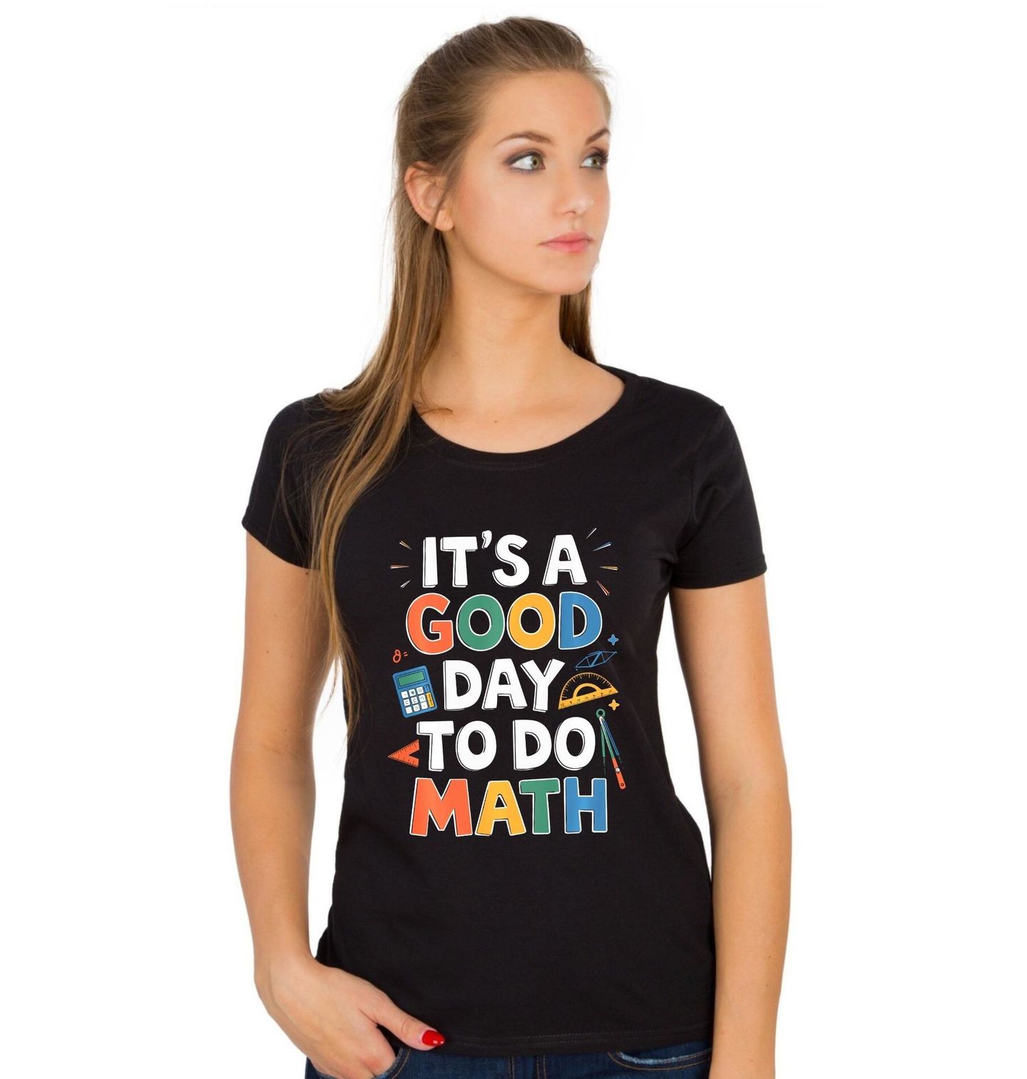 Dámské tričko Skvělý Den na Matematiku. Každý den je ten správný čas na matematiku! Tento hravý a barevný design s nápisem „It’s a Good Day to Do Math“ je ideální pro každého, kdo se nebojí počítat, kreslit rovnice nebo prostě miluje čísla. Skvělé pro školu, do třídy nebo jako dárek pro každého studenta.