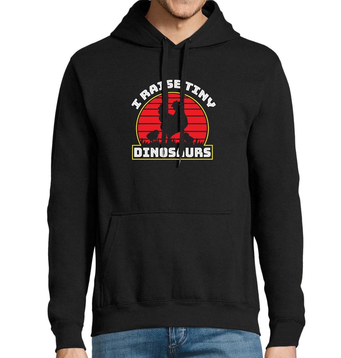 Pánská mikina Slepičí Park Chovám malé Dinosaury. I Raise Tiny Dinosaurs v překladu Chovám malé Dinosaury Slepice. Slepice jsou vlastně malí dinosauři. Vtipná parodie na film Jurský park (Jurassic Park) potěší každého milovníka drůbeže i filmových klasik. Ideální na venkov, na farmu nebo prostě jen tak do města, když chcete ukázat, že máte smysl pro humor i vědeckou přesnost.
