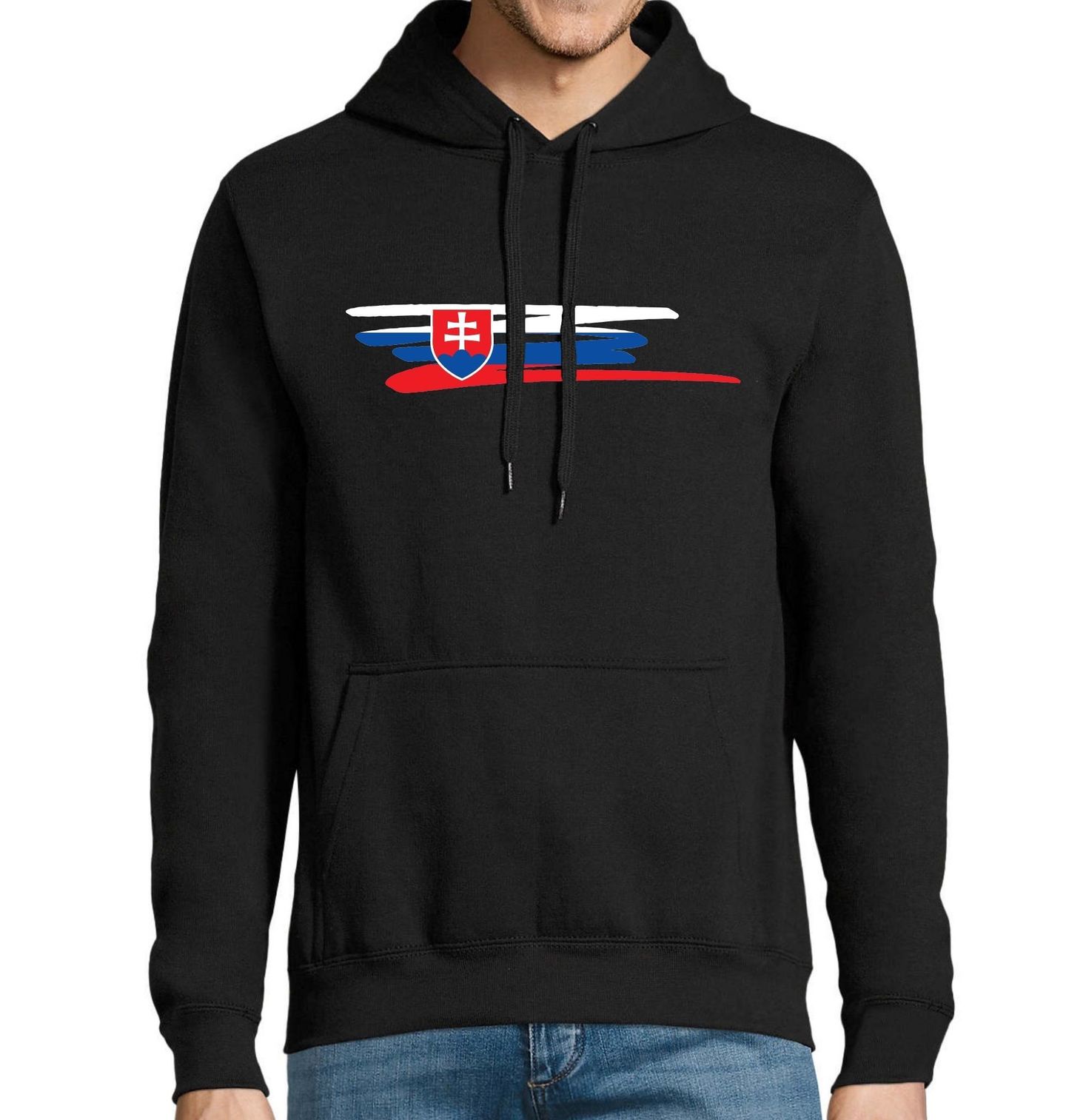 Pánská mikina Slovenská Hrdost. Tato vlajka Slovenské republiky ve formě tahů štětcem přináší pohled na tradiční národní symboliku. Dominantním prvkem je Státní znak, který je precizně zasazen do barev trikolóry. Pokud milujete Slovensko, jeho historii a kulturní dědictví, tento vizuál vás osloví svou jednoduchostí i silou.