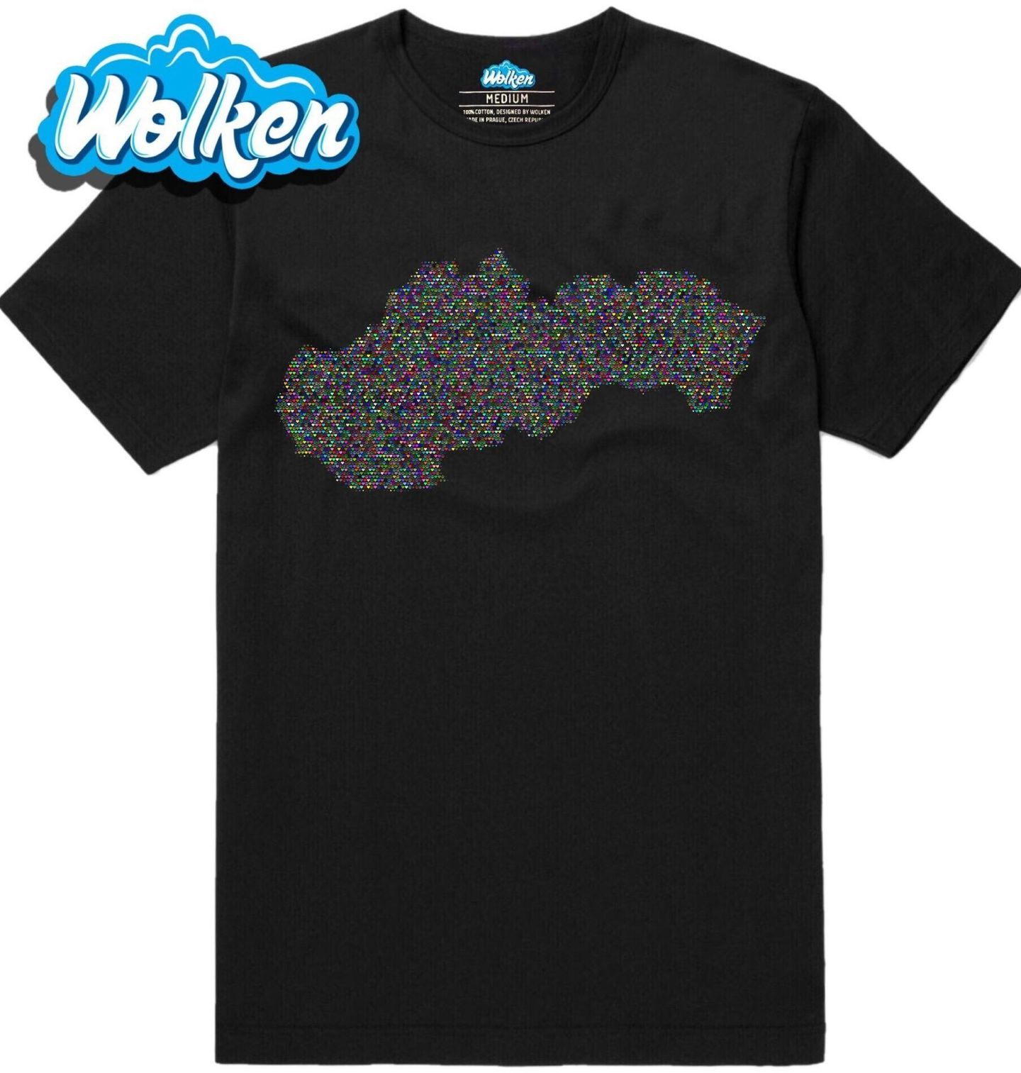 Pánské tričko Slovenská Mapa Míru. Originální mapa Slovenska složená z desítek barevných srdcí je silným vizuálním symbolem lásky, soudržnosti a přání po míru. Každé srdce v tomto motivu představuje jednotlivce, rodinu, komunitu – a dohromady tvoří celek, kterým je hrdé a krásné Slovensko.