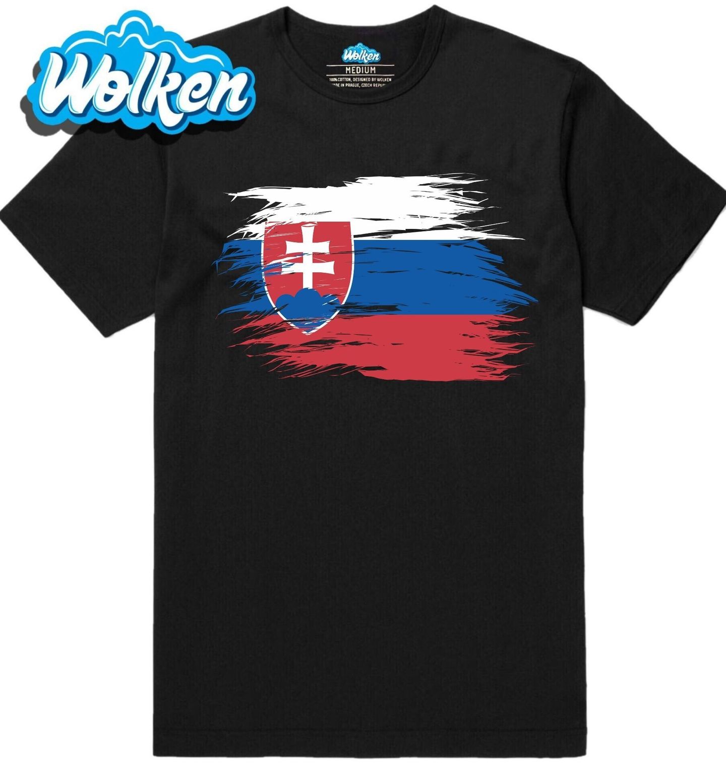 Pánské tričko Slovenská Vlajka se Státním znakem. Stylizovaná vlajka Slovenské republiky v originálním „brush stroke“ provedení doplněná o výrazný Státní znak Slovenské republiky představuje moderní a dynamický motiv pro všechny milovníky vlasti a národní identity. Tato kombinace symbolizuje sílu, historii a Slovensko.