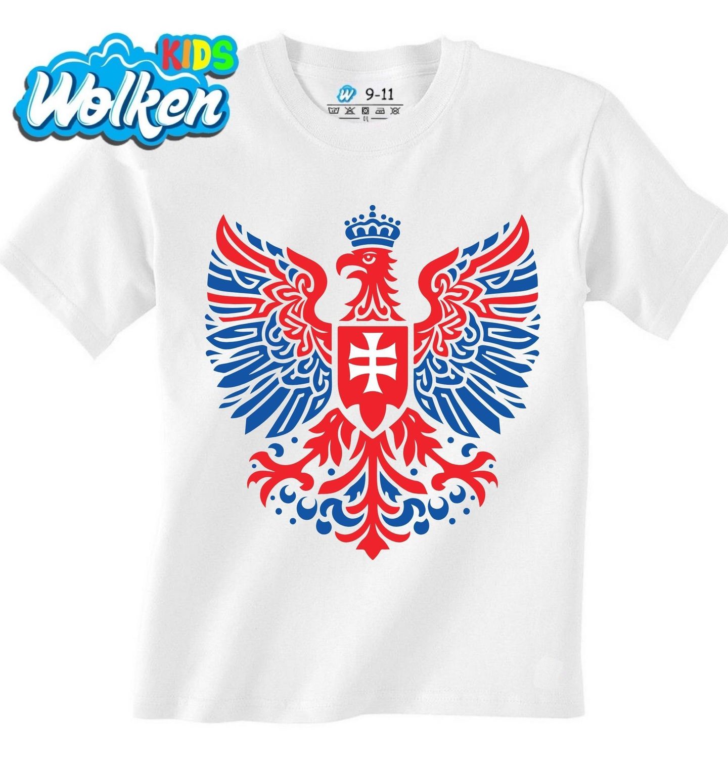 Dětské tričko Slovenský Heraldický Orel. Tento originální motiv představuje stylizovaného orla, zdobeného barvami slovenské trikolóry a doplněného symbolem připomínajícím Státní znak Slovenské republiky. Pokud hledáš motiv, který propojí Slovensko, jeho historii i moderní pojetí národní identity, tenhle stylizovaný orel je přesně pro tebe.