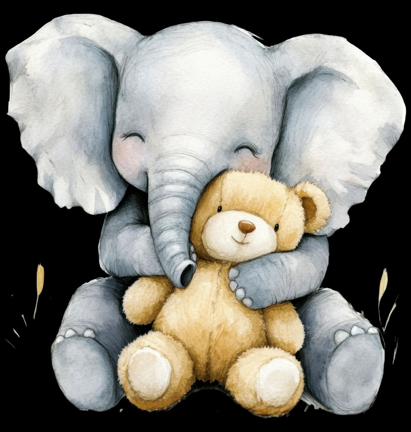 Dámské tričko Slůně s Plyšovým Medvídkem. Roztomilý akvarelový motiv, kde něžný slon objímá měkký plyšák ve tvaru medvěda. Ilustrace působí jemně a hravě, takže je ideální pro všechny, kdo milují zvířata a pohádkový styl. Kombinace zvířátka a hračky vytváří pocit bezpečí, přátelství a dětské radosti.